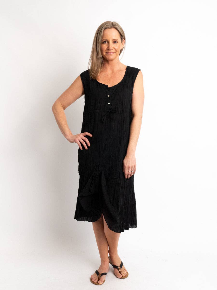 Great dress for everyday spring/summer Soft pure cotton Loose comfortable knee-length Shirred scoop neck Flat pleats front and back Cap sleeves Fuchsia lime garden print Style Code D421 Size Will suit Australian size (approx.) S 10-12 M 12-14 L 16-18 XL 18-20