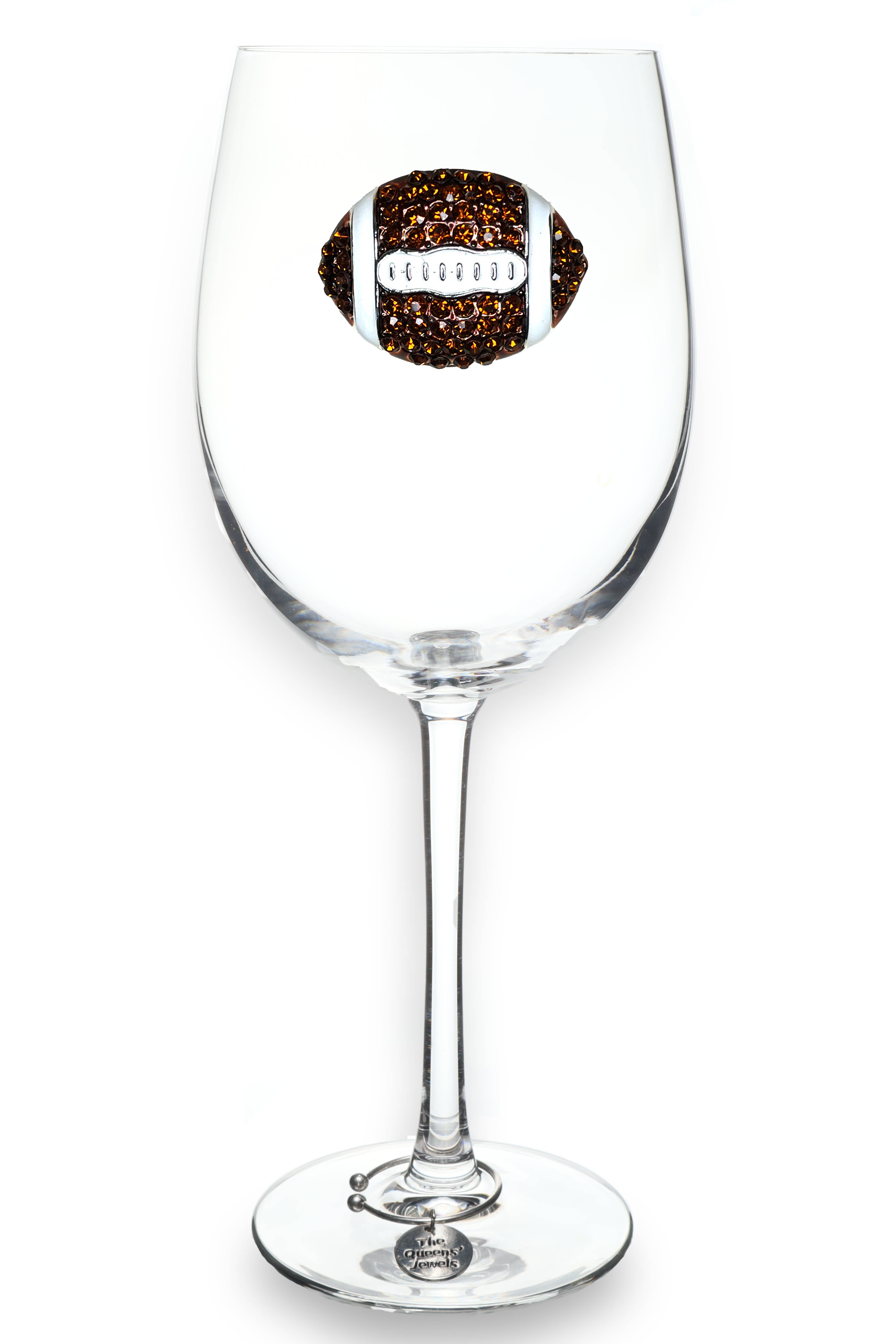 Football Jeweled Glassware - Stemless - Brown and White