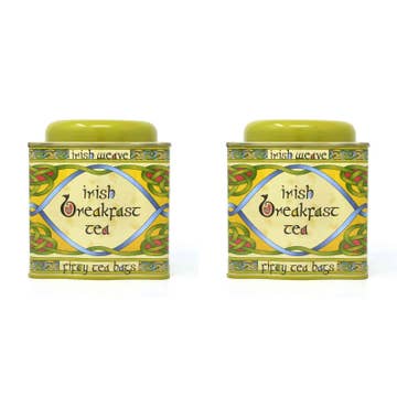 Experience the delightful taste of Irish breakfast tea with our Irish Breakfast Tea, 50 bags. Our blend of tea is creating a rich, flavorful brew that's perfect for any time of day, but it’s best served next to a big plate with a full Irish breakfast. Each pack includes fifty tea bags, so you can indulge in the comforting taste of this tea for a long period of time or share it with friends and family during special occasions. With a net weight of 4.4 oz and a gross weight of 10.4 oz, this tea blend is easy to store and transport while still providing plenty of tea for multiple servings. Packaged in a beautifully designed tin box with intricate Trinity knots and other Irish motifs, this tea blend makes for an excellent gift for tea lovers and those passionate about Irish culture. The tin box can be easily washed and reused for other purposes, thus being a very environmentally friendly product.