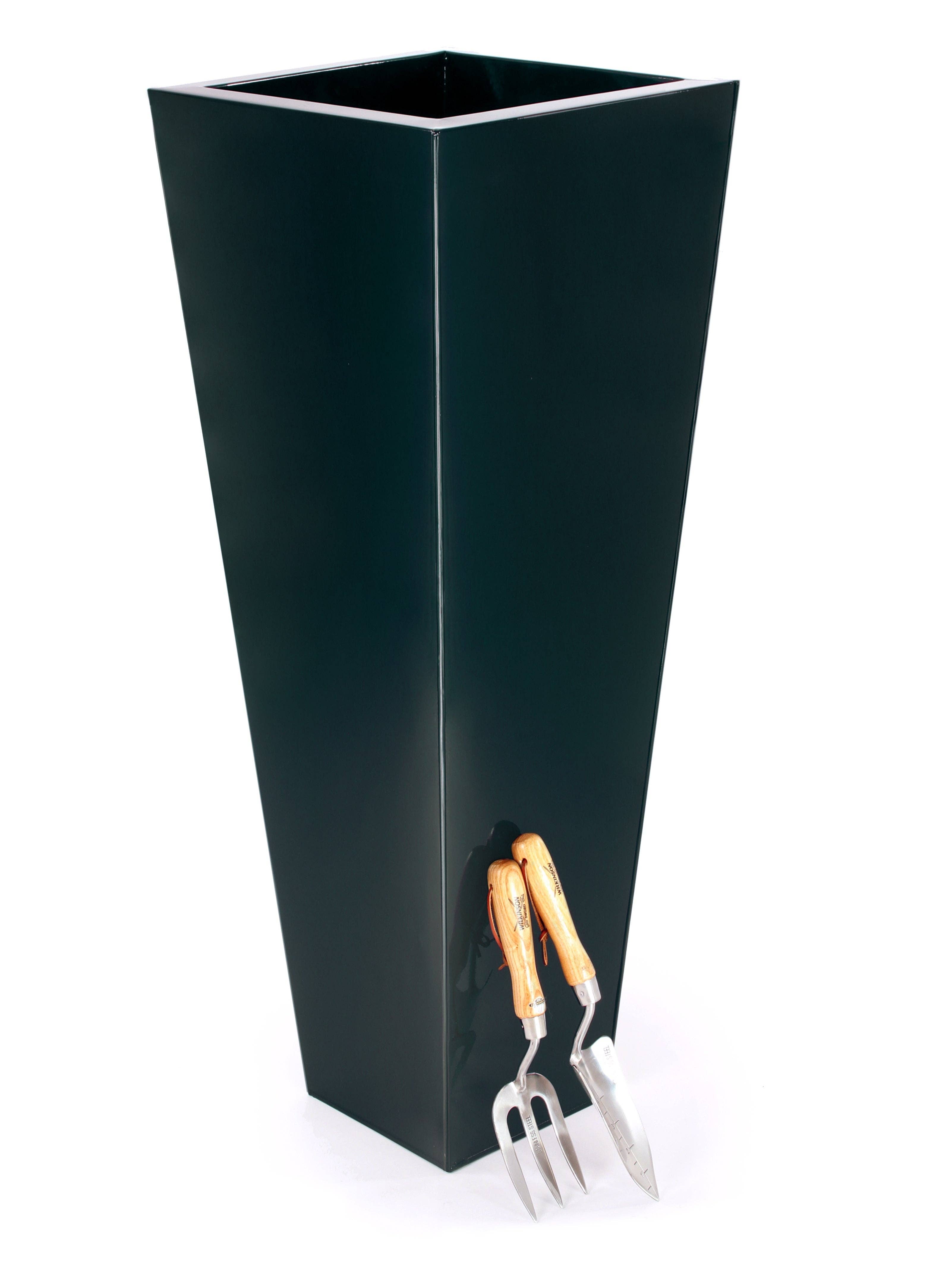 For container gardening on patios, decks, porches or balconies, the odette flower box stands have a simple modern design that lifts the box up off the ground for good air circulation and drainage. Excellent for creating a green wall or border along a patio or deck, dividing an eating area, or creating a multi-level arrangement. Use these planters for cascading annuals, an herb collection, a container vegetable garden or sculptural arrangement of succulents. The one-piece wrought iron odette stands come in medium and large with a galvanized flower box, in classic green, cape cod white, nantucket blue or copper plated.