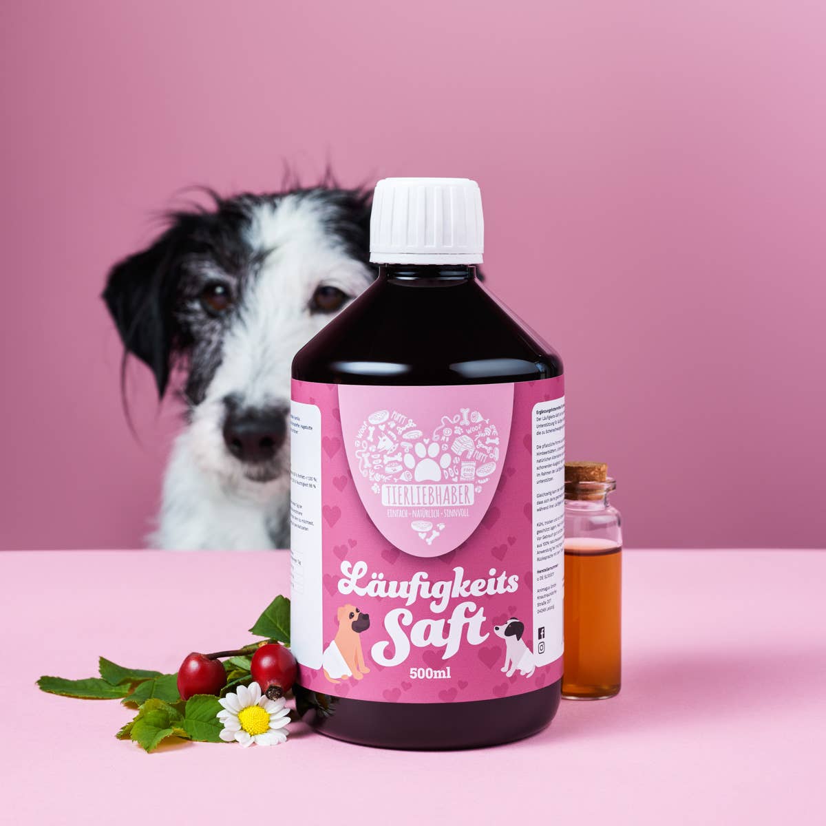 Complementary food for dogs Cough herb juice is a delicious juice made from a specially selected herbal mixture for your dog's free airways and bronchi. Thanks to herbs such as fennel, anise and sage, the 100% natural formula soothes mucous membranes and bronchi particularly gently. At the same time, cough irritation is alleviated, expectoration promoted and the immune system is naturally strengthened. In addition to being very easy to use, the liquid dosage form also enables high bioavailability, so that the ingredients can be optimally utilized directly by the body. If you have a cough, simply add it to the food every day and the formula developed with veterinarians will do the rest! Composition: herbal mixture (ribwort, thyme, elderflower, marshmallow, fennel, sage, anise, licorice, rose hip, linden flowers, sea buckthorn) cooked and filtered