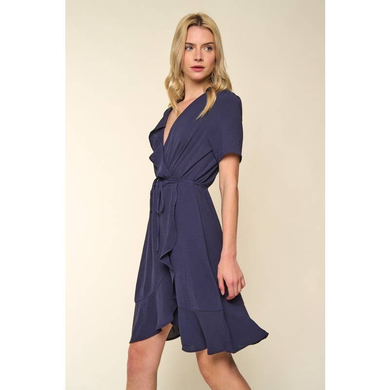 Ruffle Surplice V Neck Wrap Air Flow Flare Dress