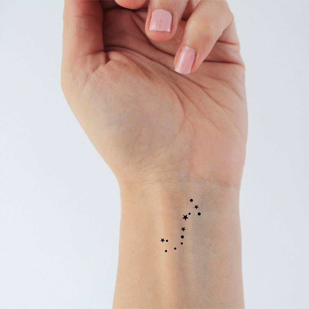 Set of 6 temporary tattoos of the Capricorn constellation with stars. The size of a tattoo is approximately 3.5 x 3 cm. The tattoo is of high quality. It lasts between 3 days and a week. A user manual is sent with your order.