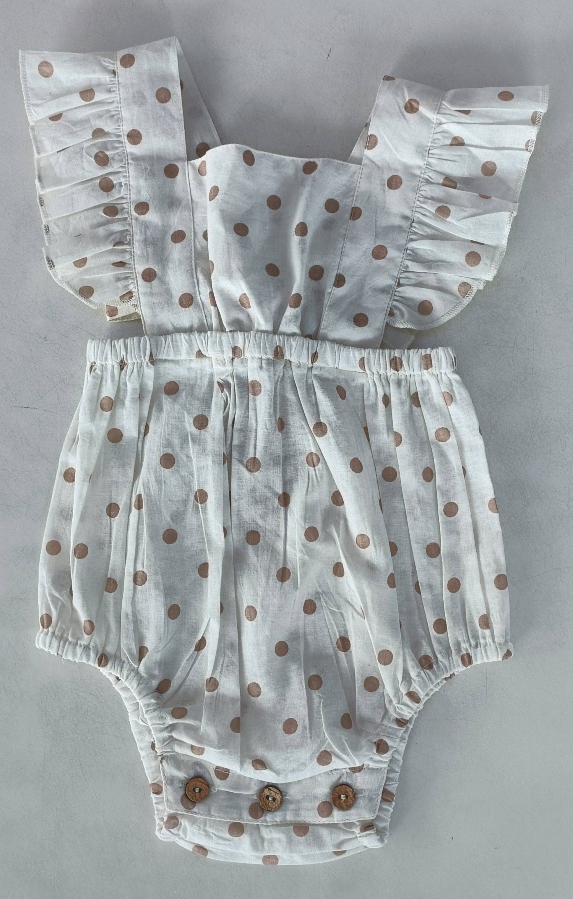 * Shell: 100% Cotton * Fully Lined 100% Cotton * Buttons: Coconut Shell * Infant Size Comes With A Bloomer