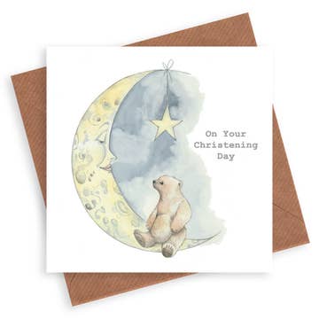 This embossed and silver foiled Christening card is printed with 'On your Christening day with love'. The text is framed in beautiful ornate scrolling. * Dimensions: 150mm x 150mm * Blank inside for your own message * Printed in the U.K on quality 350gsm board * Comes wrapped in Compostable bag * With matching sustainable sourced envelope * Can be sent with Royal Mail standard letter stamps