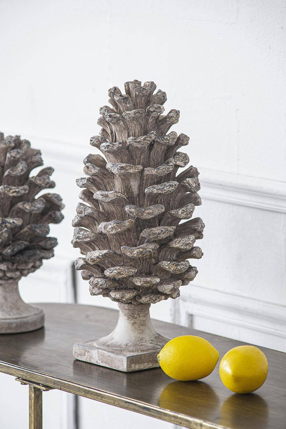 Elevate your decor with this resin antique gold trinket box, a perfect blend of functionality and vintage charm. Crafted from durable resin, this set includes a round trinket box and a smaller matching container, both finished in a distressed, antique gold patina with a weathered, silvered texture, giving them an aged, handcrafted look. The larger box features a scalloped lid with a delicate bird perched on top, while the lid’s interior showcases a fan-like, ribbed design, adding a touch of elegance. A second bird adorns the lid’s edge, its detailed feathers enhancing the piece’s nature-inspired aesthetic. The smaller container mirrors the design, creating a cohesive set. Perfect for storing jewelry, as shown with pearl bracelets and gold chains, or small keepsakes, this trinket box set is ideal for a coffee table, vanity, or shelf, as displayed with books and flowers. It brings a timeless, romantic charm to both modern and traditional interiors with its ornate, resin design.