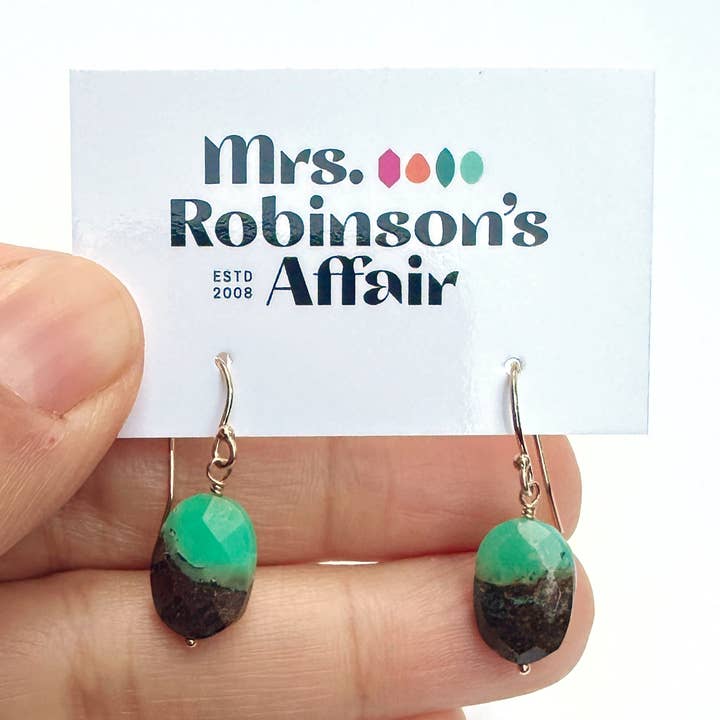 Simple Earrings average 1 inch in length and are either sterling silver or gold fill metal with a wire wrapped natural gemstone. You will receive a stone similar to the one pictured, however due to the nature of natural stones, each stone may vary in size color and/or pattern.