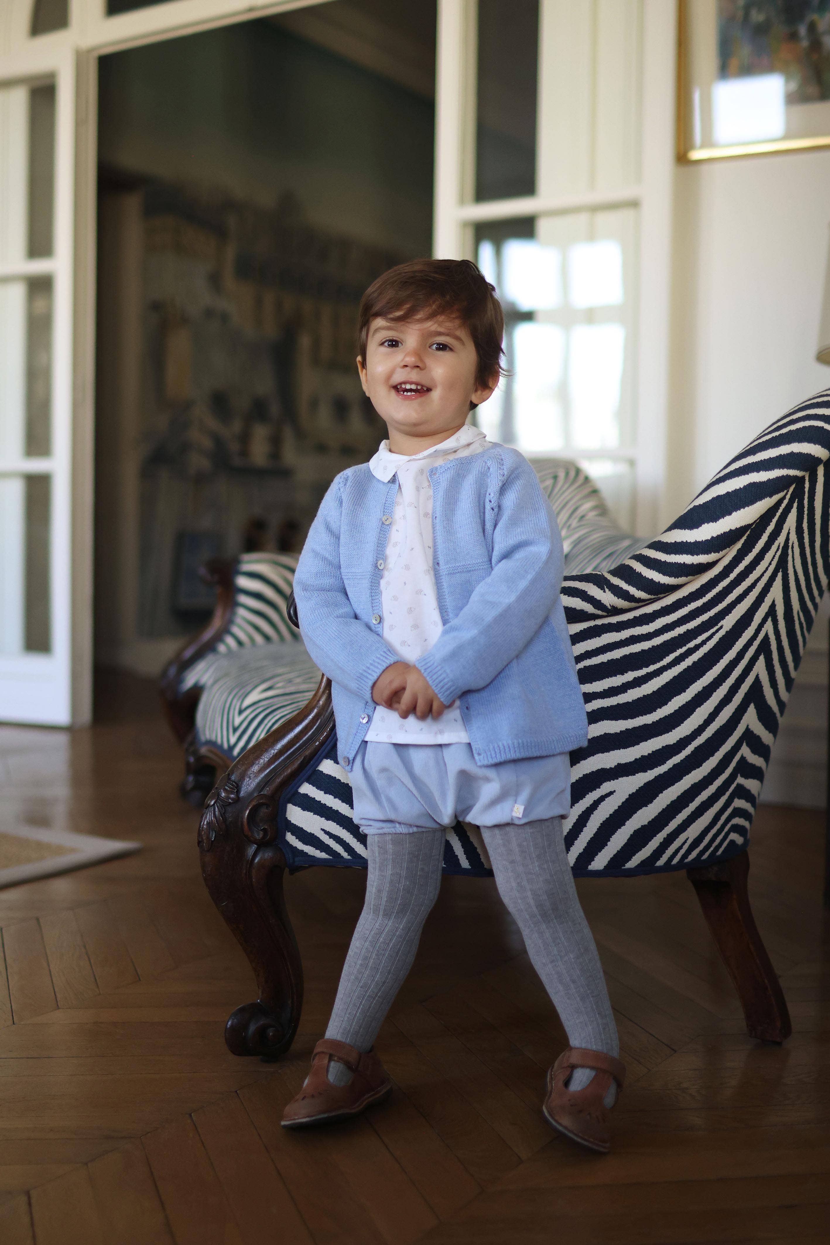 Our straight pants are made of light pink cotton, fresh and bright. It has a piping and a back pocket with pink leopard fabric and a small mother-of-pearl button bringing character. It's comfortable and easy to put on, little girls will love it! No buttons, all elastic, it's easy for kids. Soft pants that are easy to combine. We recommend the white checkered cockerel blouse or the butterfly cockerelle blouse.