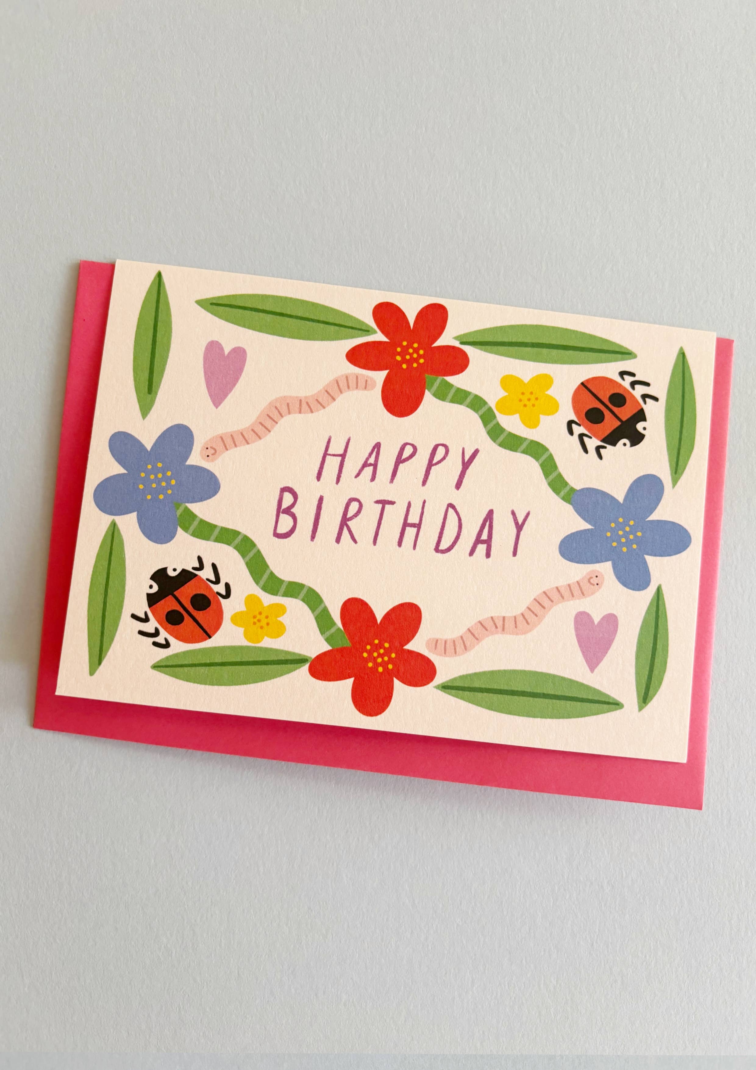 The card for someone who just wants an intimate get together for their birthday. • Card reads, "Happy birthday - let's celebrate!" • Digitally printed onto luxe, bright-white linen textured paper • Folded card measures A2 (4.25″ x 5.5″) and comes with a coordinating envelope • Made in the US • Words and illustrations by Julia McCormick. Love Julia X And Here We Are