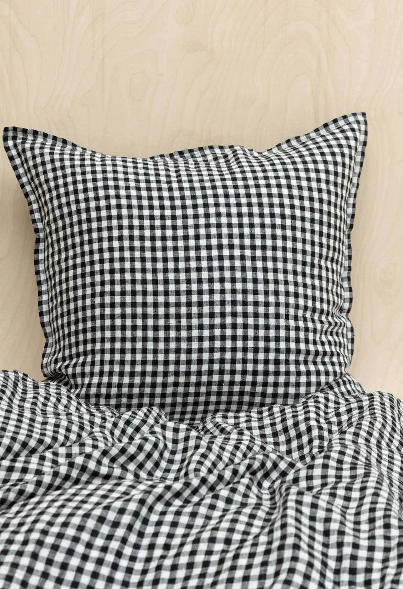 Give your bed a touch of character with this washed linen gingham pillowcase. Both timeless and refreshing, it brings a natural and refined spirit to your home linens. Its washed European linen weave gives it an elegant crumpled look and a softness that increases with each wash. Breathable, durable, and naturally thermoregulating, this pillowcase is ideal for any season. It pairs perfectly with a plain or coordinated duvet cover for a bed with discreet and neat charm. DETAILS 100% washed linen Dimensions: 65 x 65 cm and 50 x 75 cm 1.5 cm flange finish Envelope closure CARE Machine washable at 30°C Tumble dry allowed Iron as desired We recommend not ironing it to maintain the "crumpled" effect of washed linen PERSONALIZATION Your embroidery will be positioned on the top right corner of the pillowcase Once the item is embroidered, it cannot be returned Pillowcase/Gingham linen