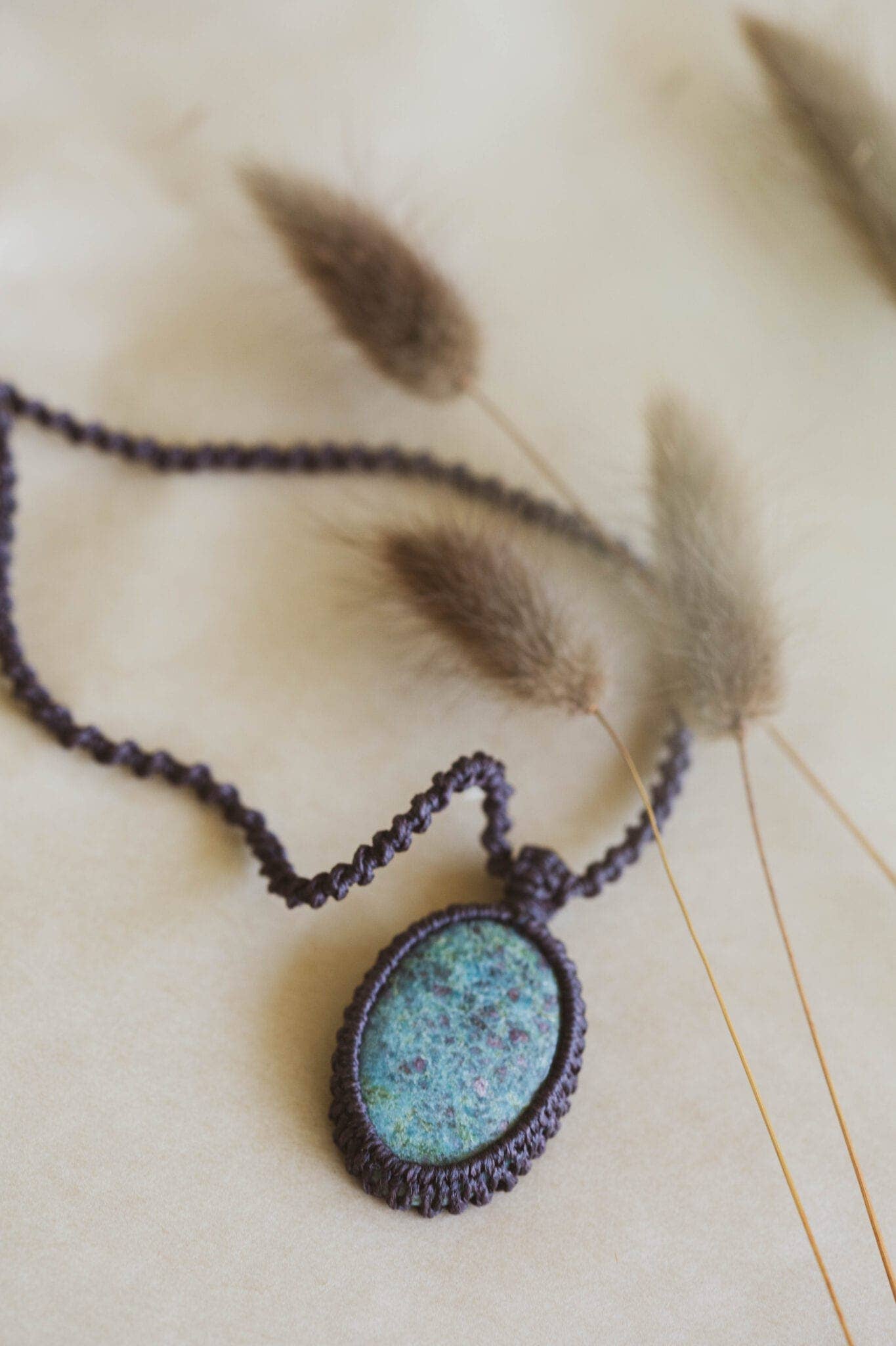 Chrysocolla is a crystal of communication. The Chrysocolla Pendant will help with self expression and empowerment. It also will calm negative energies and allow truth and wisdom to surface above all else. This pendant has been created with dark brown vegan waxed cotton cord so that you can wear it all day everyday, even in water. This oval shaped crystal pendant measures approximately 4cm long and 2.5cm wide at it's largest point. * Pendant / Necklace * Vegan waxed Cotton Cord * Natural Chrysocolla * Gemstone / Crystal * Waterproof Let this Chrysocolla Pendant bring clear communication and calm into your life. Each natural Crystal has its own unique character and will differ slightly in blue/green/brown colour.