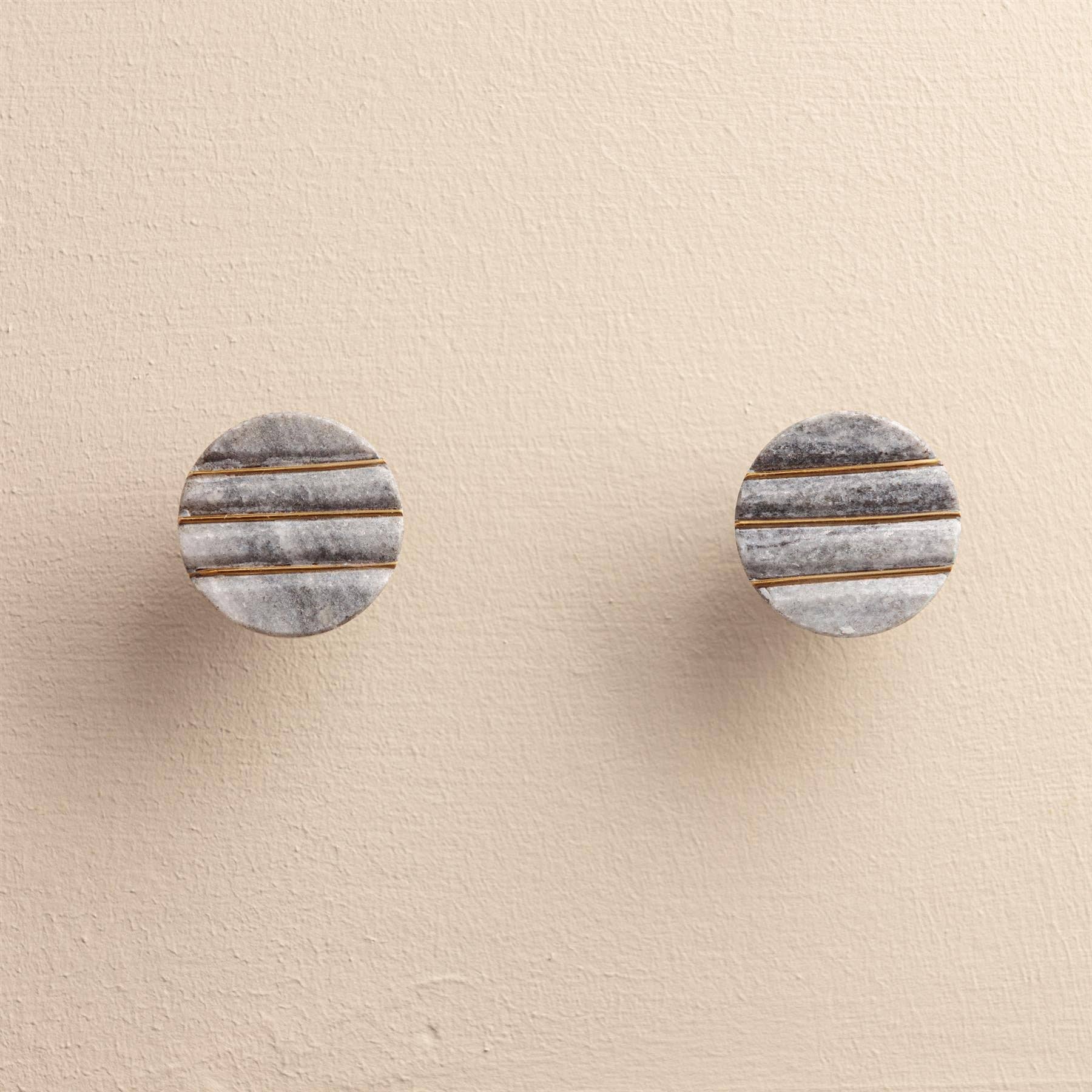 These blue marble knobs with a gold linear inlay will elevate the detailing of your furniture. Pack of 2 Measurements: 4cm x 4cm x 2.6cm Weight: 0.06 kg Materials: 80% Marble, 20% Iron