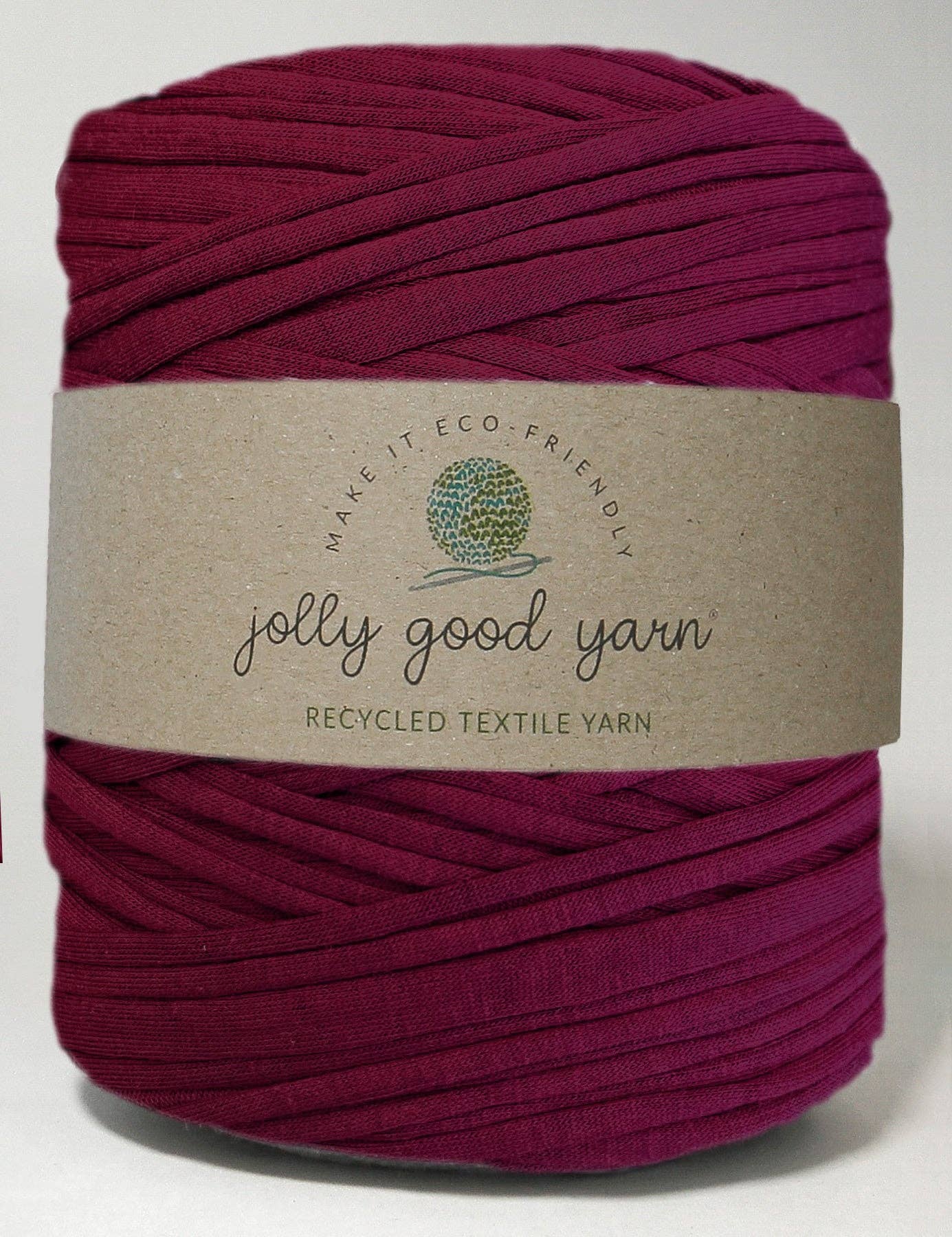 Black t-shirt yarn from Jolly Good Yarn. This chunky yarn, normally at least 80% cotton, is made from strips of remnant and recycled fabric and textiles. It's popular across the world and goes by a variety of names, such as jersey or spaghetti yarn! Each bobbin provides 100-120m of yarn and typically weighs 800g. Due to its recycled nature, shades are limited, and the yarn's length, width and ball weight can vary, it may also contain joins. This is a wonderfully soft, washable, and versatile eco-friendly yarn that is perfect for crochet, macrame, weaving, loom knitting and more.