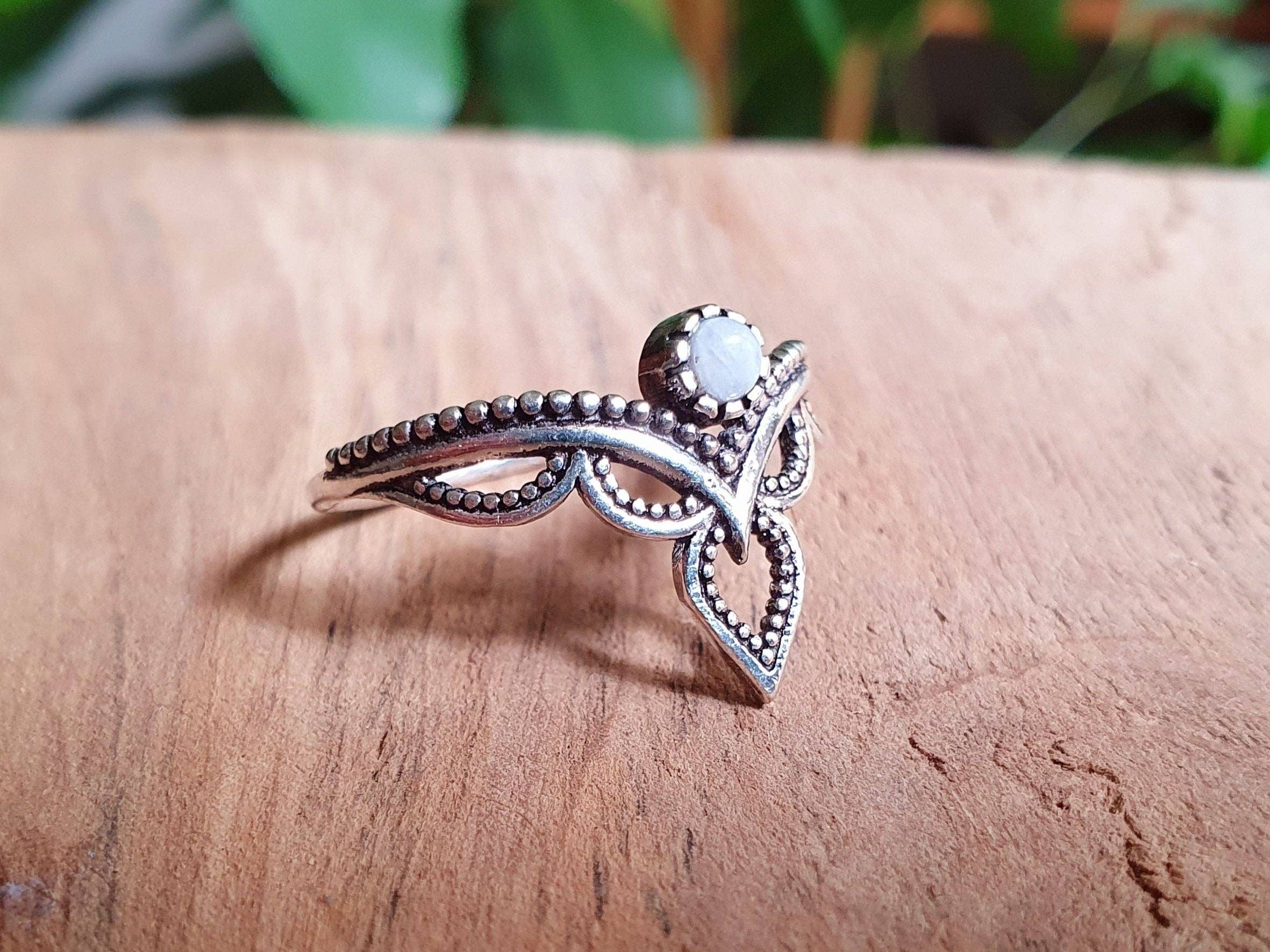 Ethnic style silver plated and moonstone ring. Adjustable. Silver plated, 100% free from lead/ nickel. Ring sizes conversion FR/EU USA UK/IRL 48 5 J 51 6 L 54 7 N 57 8 P 60 9 R 63 10 T
