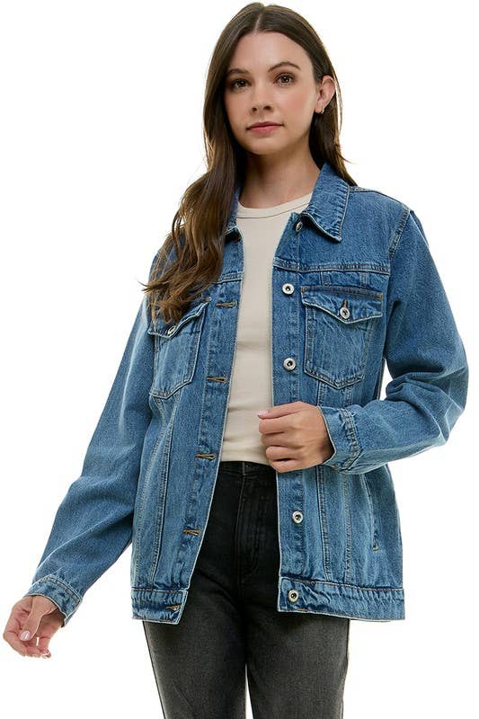 BLUE AGE LADY DENIM JEAN JACKET (OPEN PACK) Authentic long-sleeve button-up closure with button flap chest pockets. 100% Cotton Designed in California Machine Wash Durable Jacket for everyday use Young Contemporary