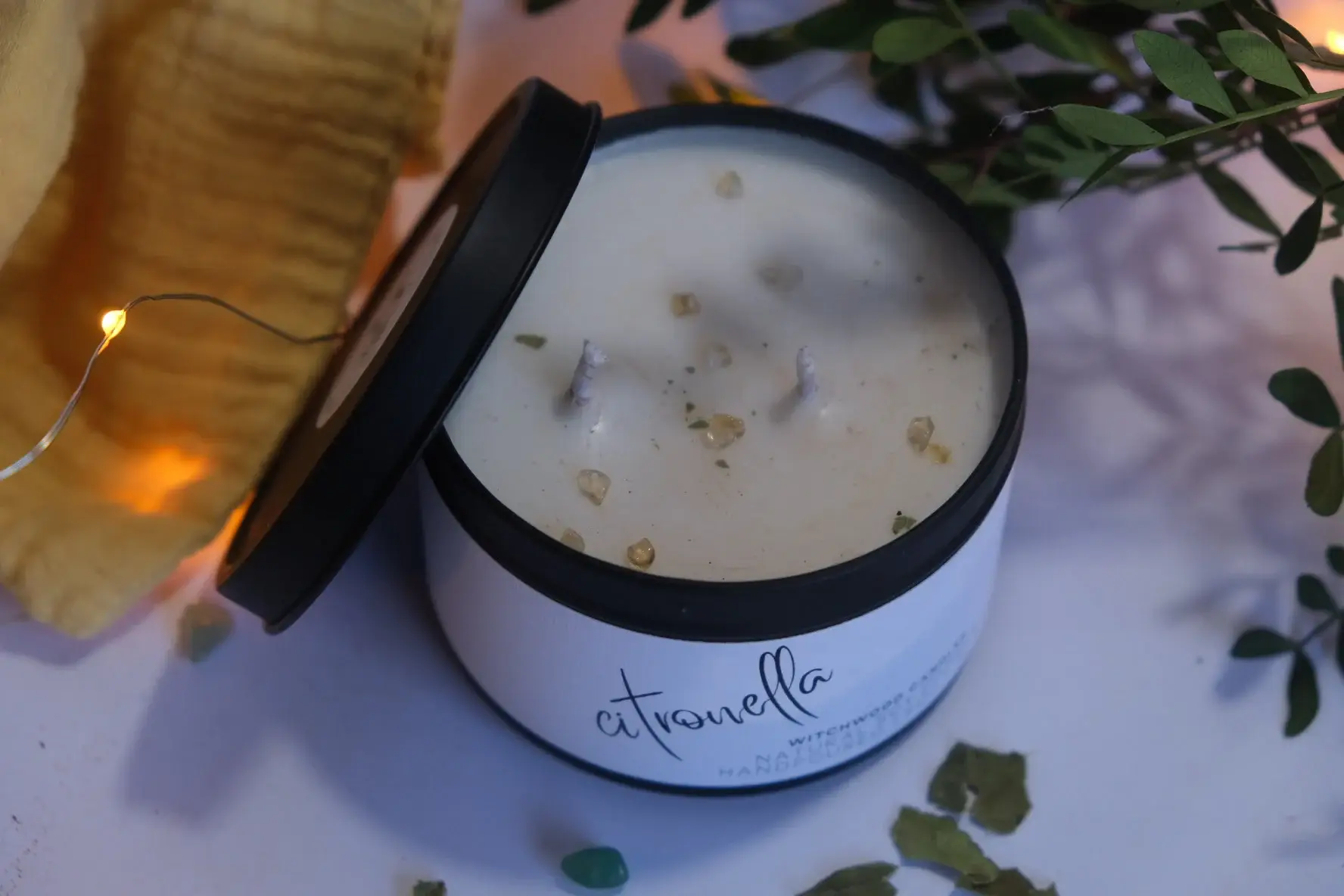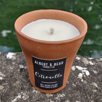 Keep the bugs at bay with our exclusive collection of organic citronella candles. Hand-crafted artisans use blown glass techniques to create a beautifully designed hurricane in leafy green tints that glow with natural charm when each candle is illuminated. The hand-crafted nature of the glass will create some variation from what is shown in the image. Our outdoor candles feature fragrances inspired by nature that are layered with citronella to create a pleasant atmosphere. This candle mimics the scent of a fresh summer evening, with sensuous fragrance notes of musk and eucalyptus, along with hints of fresh lemon and orange. This candle burns for approximately 14 hours.