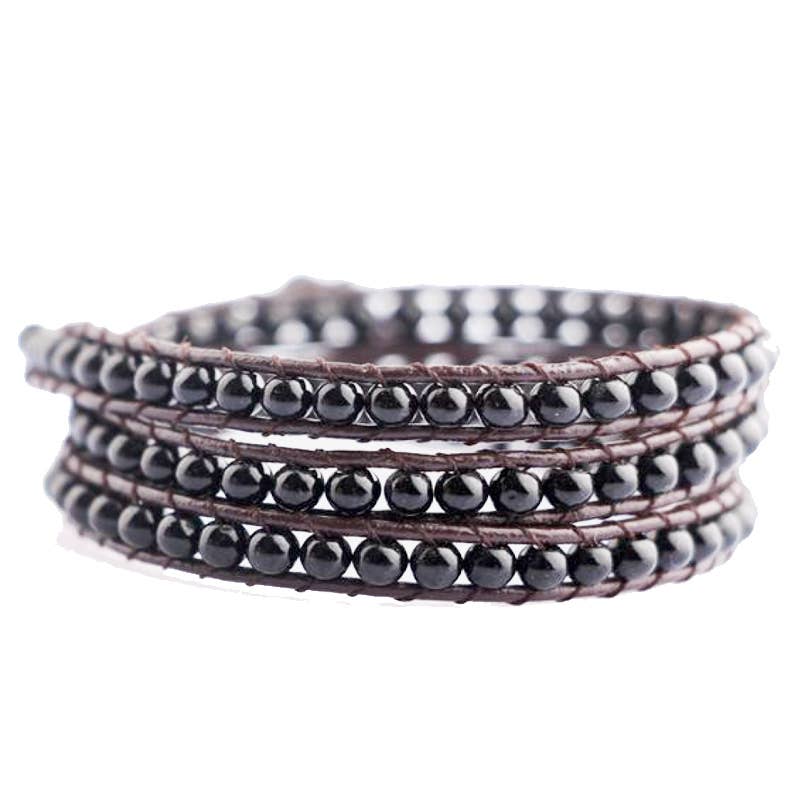 Fastens with the little flower, as it is possible to tie knots on the leather anywhere, this bracelet will fit all sizes! Stainless steel clasp Total length of the stones: 16.5 cm