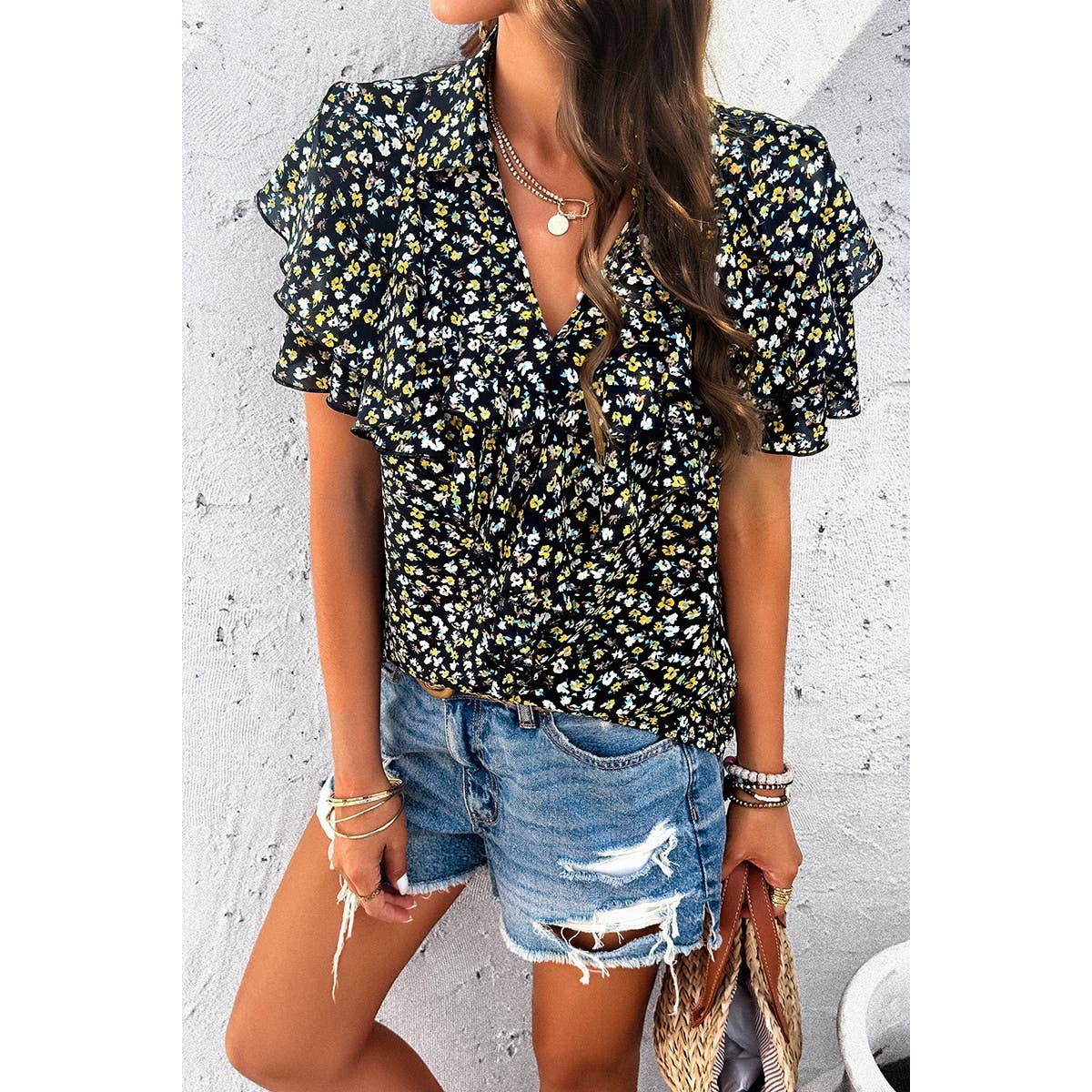 Attention: Some colors displayed on the website may not be available for selection, but we can customize them to you. If you have a specific color in mind, we can customize that as well. For more information, please contact our customer service team. Material: 100% Polyester Features: Boho Floral Ruffle Hem V Neck Short Sleeve Dress Occasion: Casual/Daily/Outdoor/Vacation/Holiday/School/Going Out. Style # EDDS510219
