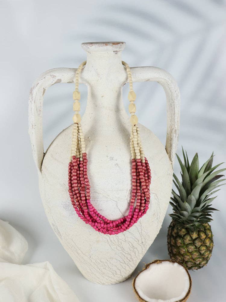 Bright, bubbly and oh so fun! These handcrafted wooden beads are designed to brighten your day. Crafted from 3 strands, this handmade necklace uses timber beads sustainably sourced from coffee trees. A delicious delight of smooth textured wooden beads that are lightweight and oh so versatile! This beautiful wood necklace is perfect for any occasion and is sure to make a statement with its colourful beads. Necklace Length: 78cm Material: Wood from Coffee Trees Designed in Australia Handcrafted by Artisans in Bali Due to the handmade nature of the timber beads, you may find inconsistencies in bead colour, size and finish. We believe this adds to the unique beauty of these pieces, making them truly one of a kind!