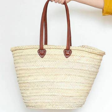 STRAW BAG Handmade with leather, French Market Basket