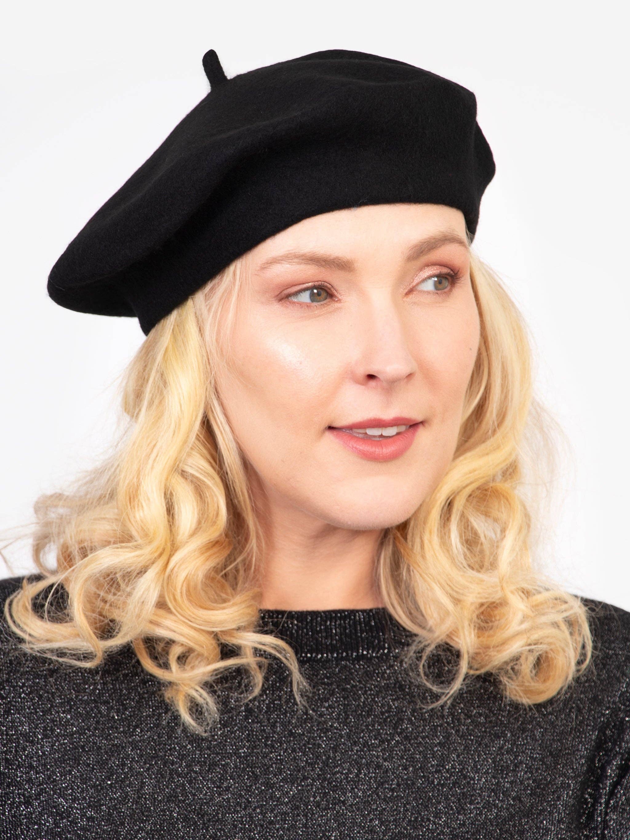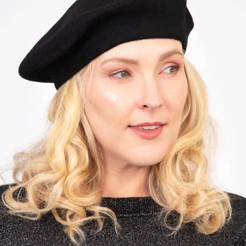 💝 PERFECT FOR Gift for her, everyday wear, Winter accessories 👒 THIS PIECE A traditional chic beret crafted from a luxuriously soft wool blend yarn. This classic plain black winter hat can be effortlessly paired with any attire. FIT Classic beret 🧵 FABRIC Crafted from a soft wool blend for a luxurious feel. 80% Wool 20% Acrylic Delicate machine wash Do not tumble dry Made in China