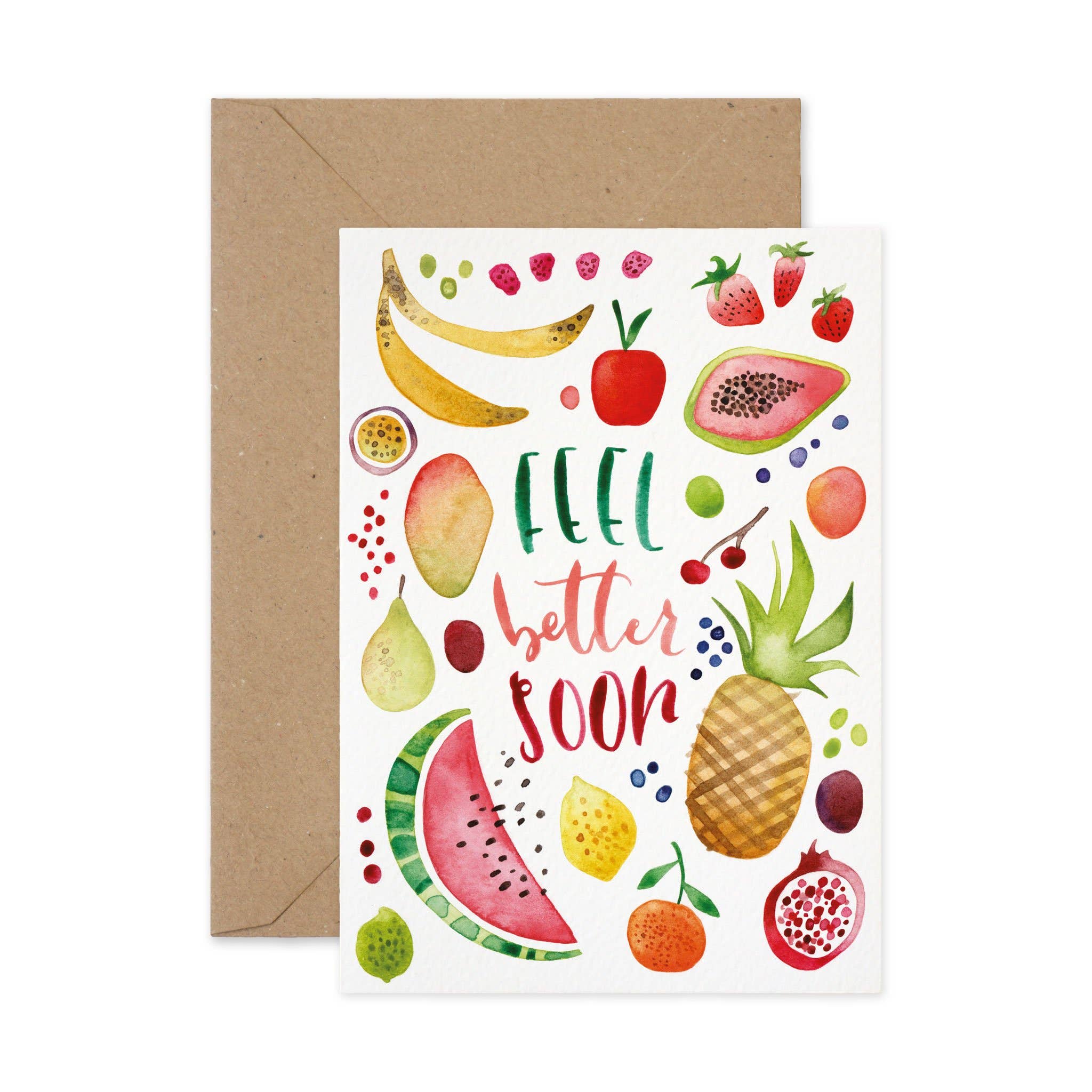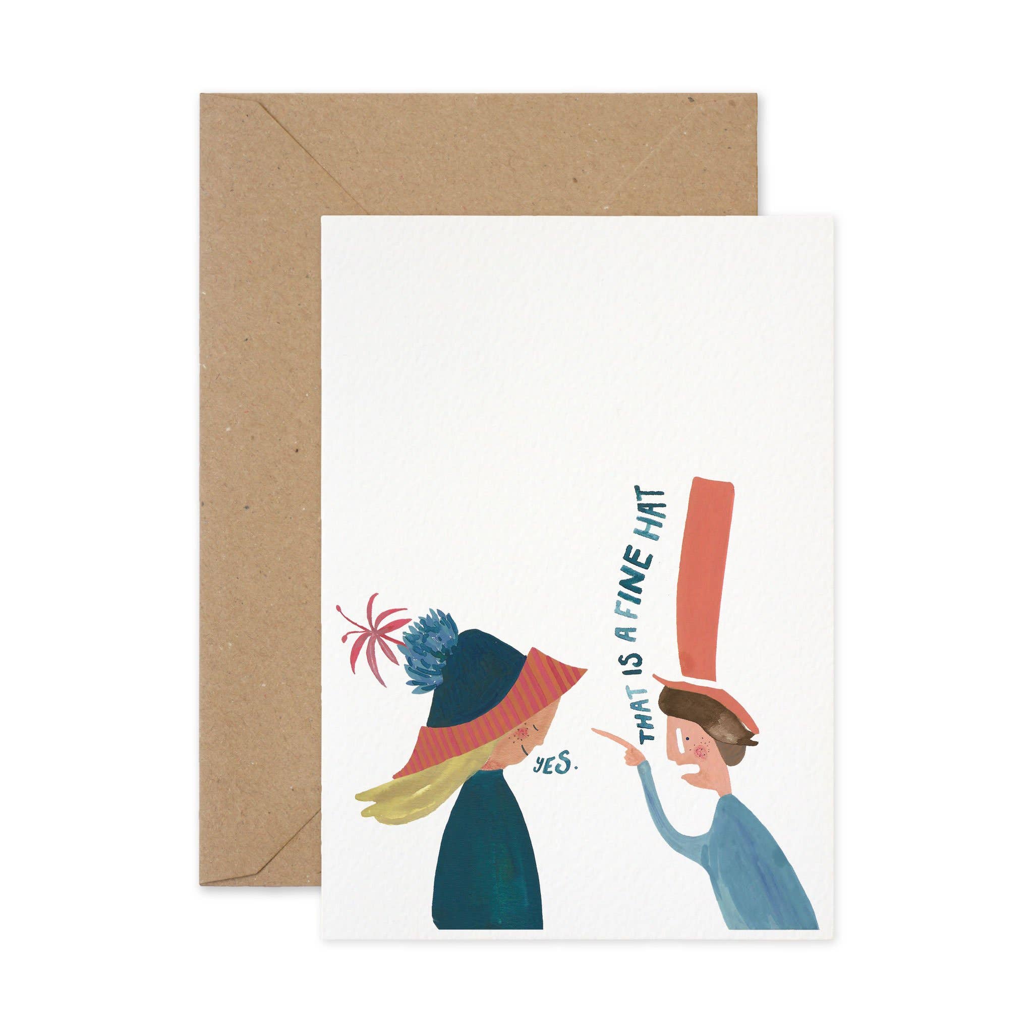 Illustrated greeting card featuring a high five design, hand lettered with the message 'high five!'. Perfect for congratulations and celebration. Size: A6 (148 x 105mm) Material: 300gsm luxury textured card Envelope: Brown fleck Design: Full colour print from an original illustration Interior: Blank for your own message