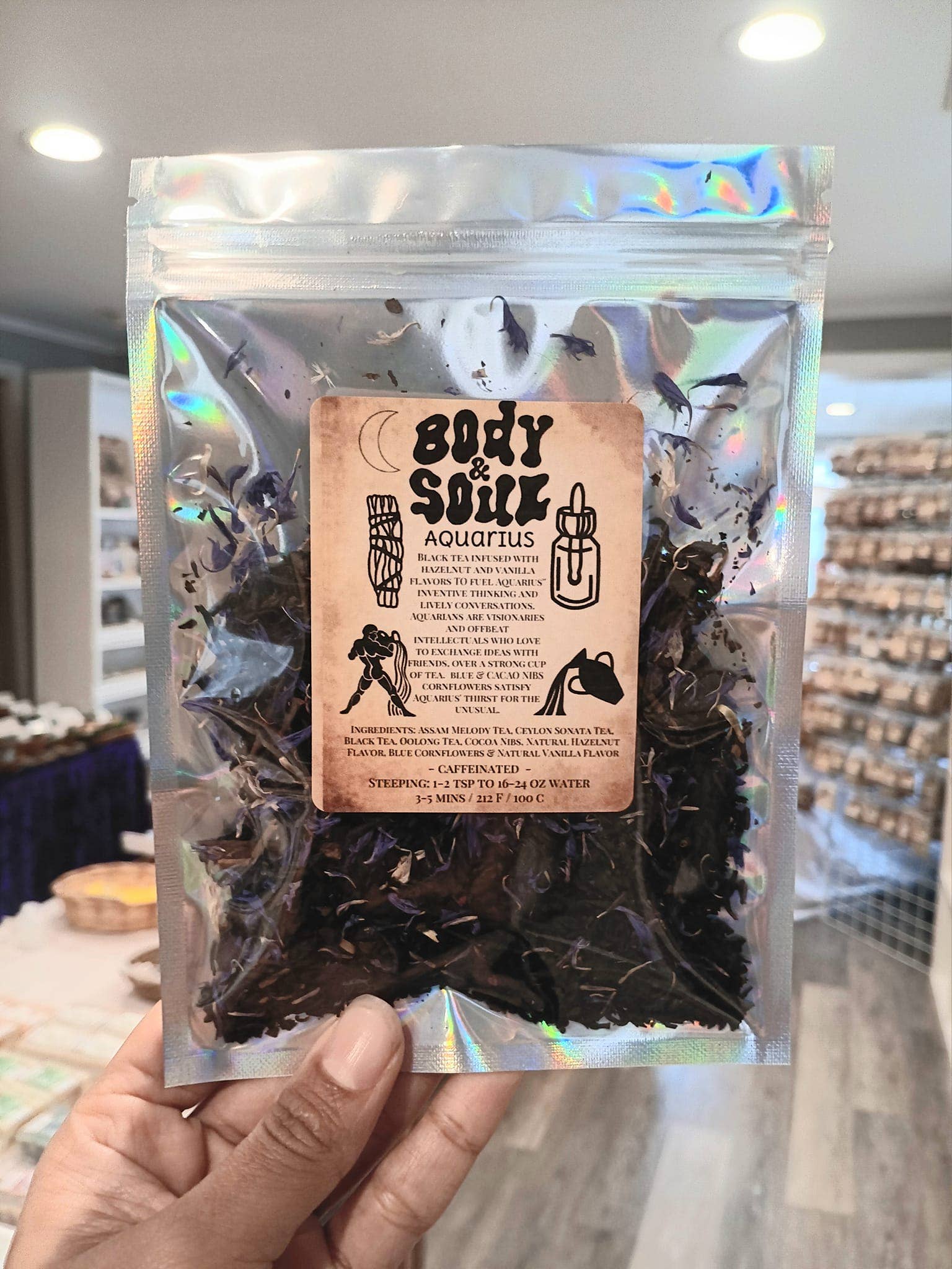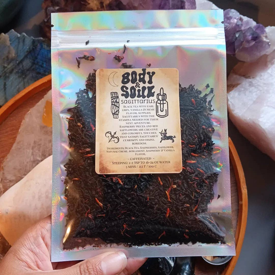 A Balanced blend of black tea, sweet strawberries, chocolate & creme will appeal to libra's sense of harmonious beauty. Ingredients: Black tea, rose petals, strawberries, cocoa nibs, natural creme, strawberry & chocolate flavor.