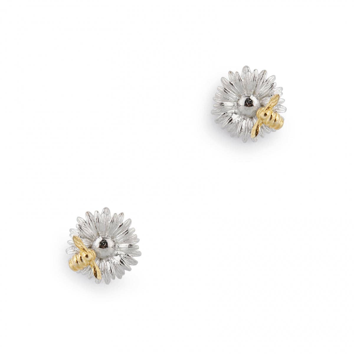 Hexagon Bumble Bee Studs - Silver