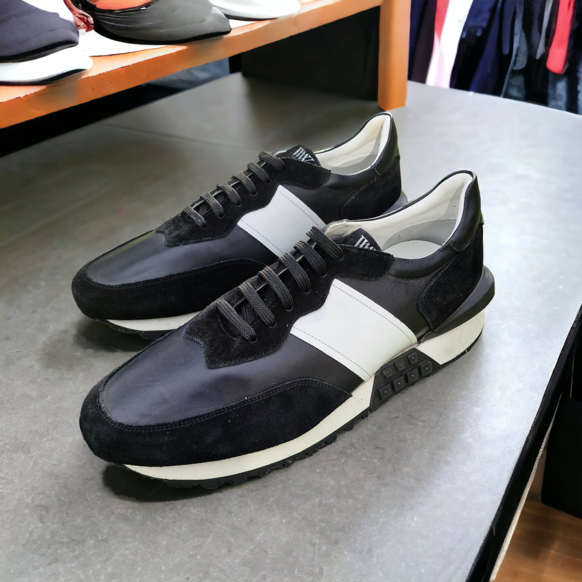 Introducing our Genuine Leather Court Sneakers, a testament to craftsmanship and comfort.The Sole is masterfully crafted in Italy by the renowned Margom, these sneakers embody the pinnacle of luxury footwear. The upper is constructed from premium genuine leather, offering both durability and a sophisticated aesthetic. The sole is made from 100% rubber, ensuring optimal traction and longevity. Inside, the 100% leather insole cradles your feet with pillow-like softness, providing an unmatched level of comfort with every step. These court sneakers are not just shoes, but an experience, designed to elevate your everyday style with ease and elegance. SIZE + FIT Tailored fit, to find your correct size use the ''what's my size '' button. COMPOSITION 100% Genuine Leather and Suede Leather. 100% Leather insole, 100% Rubber sole Sole Made in Italy - Leather Made in Turkey Style#: D2107