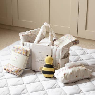A luxurious gift box for baby boys made in soft cotton. The five piece set around the baby's bath theme consists of a soft bathrobe to wrap baby in after baths or swimmings, a wash bag and a toiletry bag to store their essential care products easily, a white cotton babygrow and hat to wear baby after bath time. It makes a complete timeless and thoughtful newborn and baby shower gift. * 5 piece cotton set * Soft and fluffy towelling (90% cotton, 10% polyester) * Embroidered monogram logo on each item * Babygrow: Popper fastenings between the legs * Machine wash (30°) * Comes in a Bebe Sweeny gift box * Made in Portugal Mon Beau Trousseau Collection includes 14 items in 2 colors for baby boy and girl. Made from soft interlock, poplin and exclusive jacquard fabric, the Monogram on each item is stitched thread by thread and will make a perfect baby birth gift set.