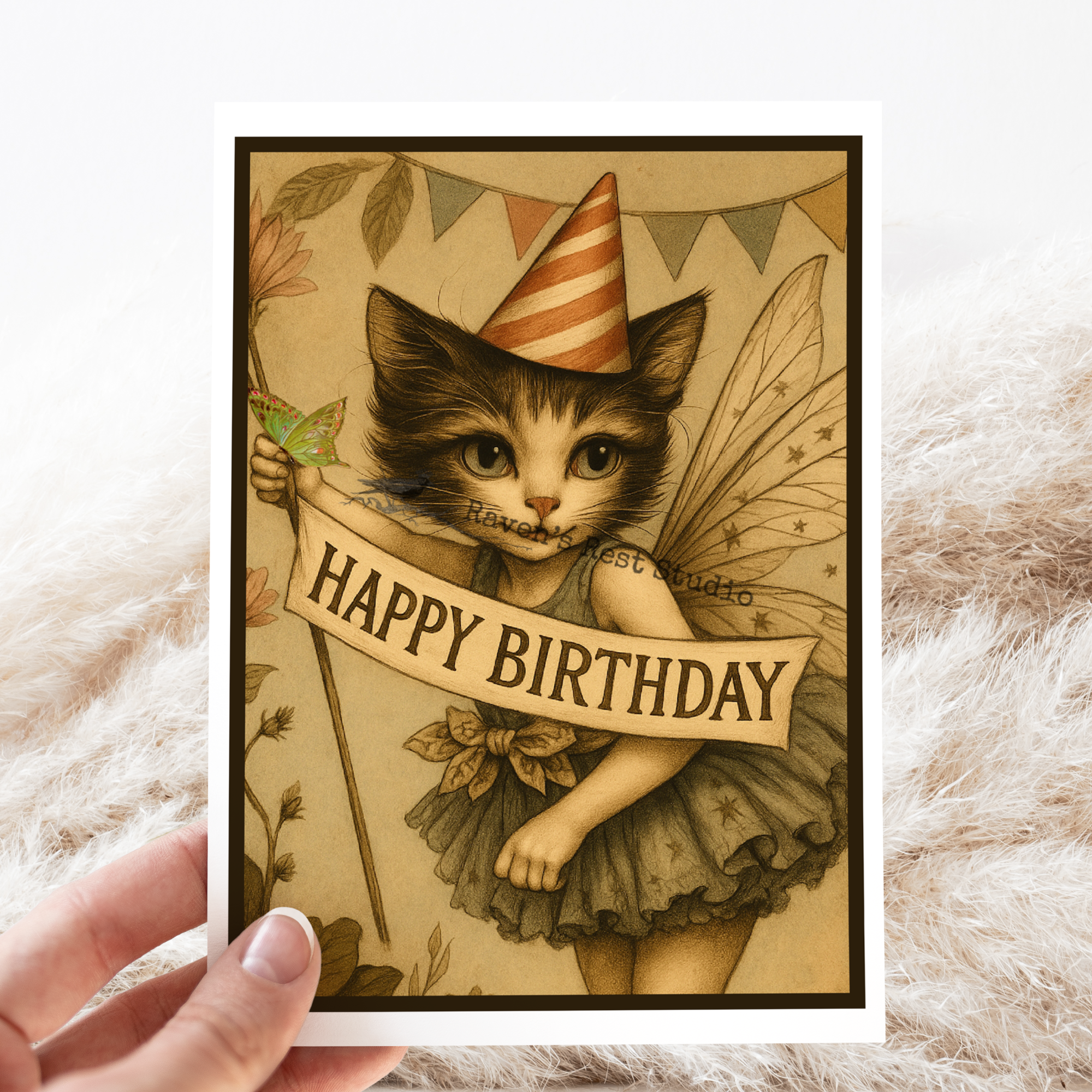 Greeting Card. Have A Purrr-fect Birthday! Vintage Cat