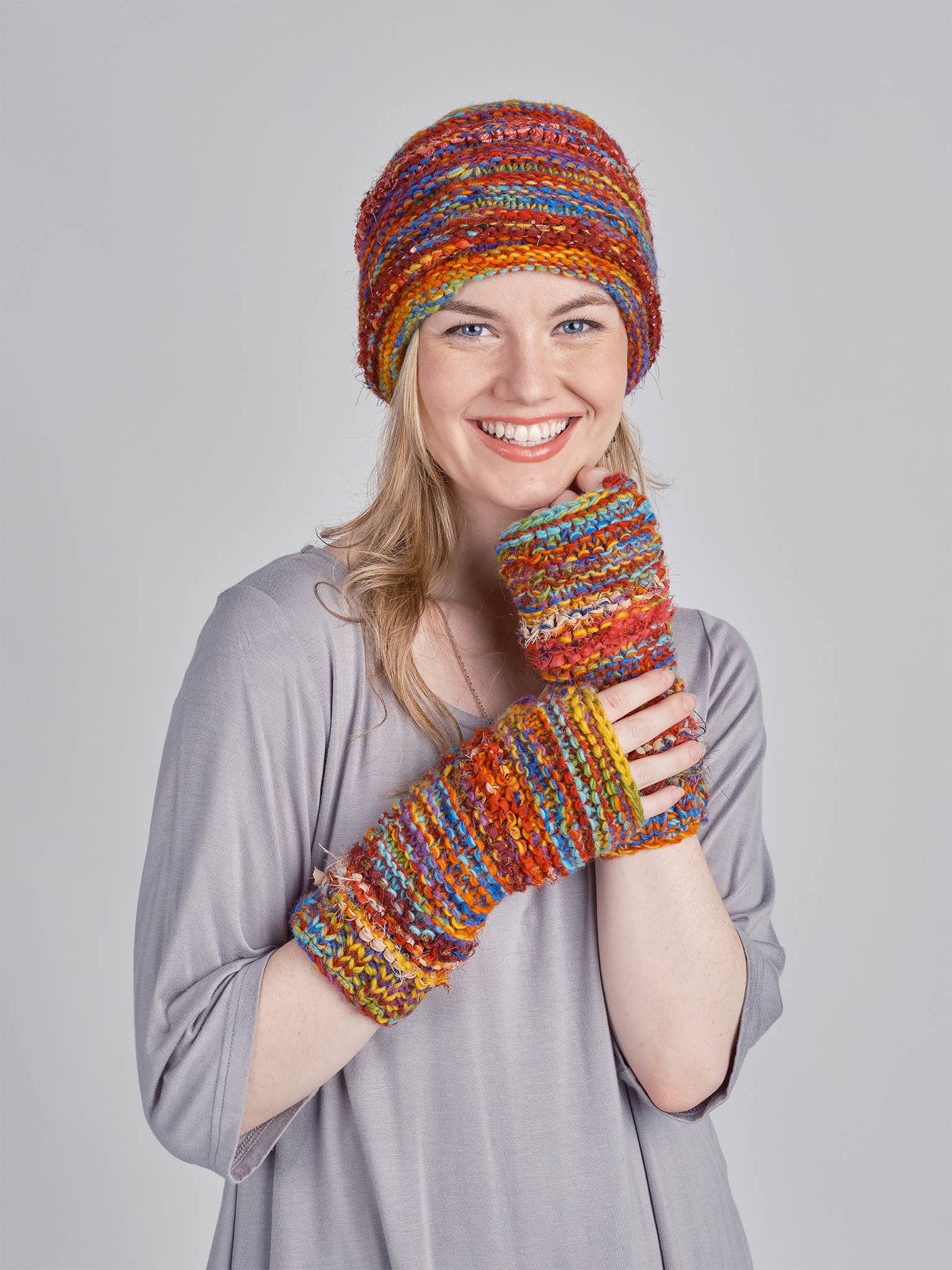 All Hats, hand-warmer, Headbands and Mittens are fully lined with lightweight fleece for additional insulation and comfort. Finished with a colorful Yarn and fleece lined, this hand knitted woolen beanie is sure to brighten up your outfit. A soft fleece interior provides extra warmth. Also available - matching Mitten, Hand-warmer & Head-band. Fleece lined 100% Merino Wool Hand Knit Hand Wash