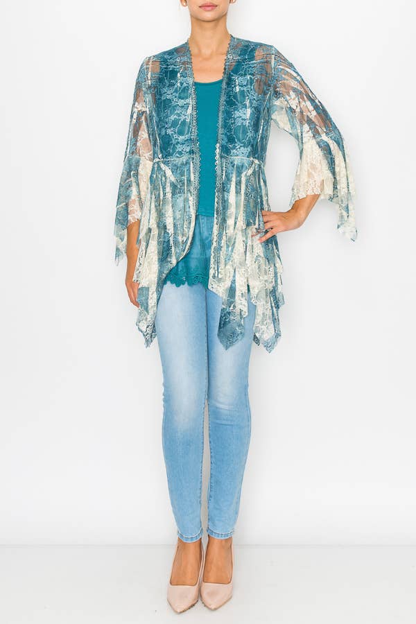 Wholesale Classic All Lace Cardigan with Tiered Layers - 4618TP/TURQ