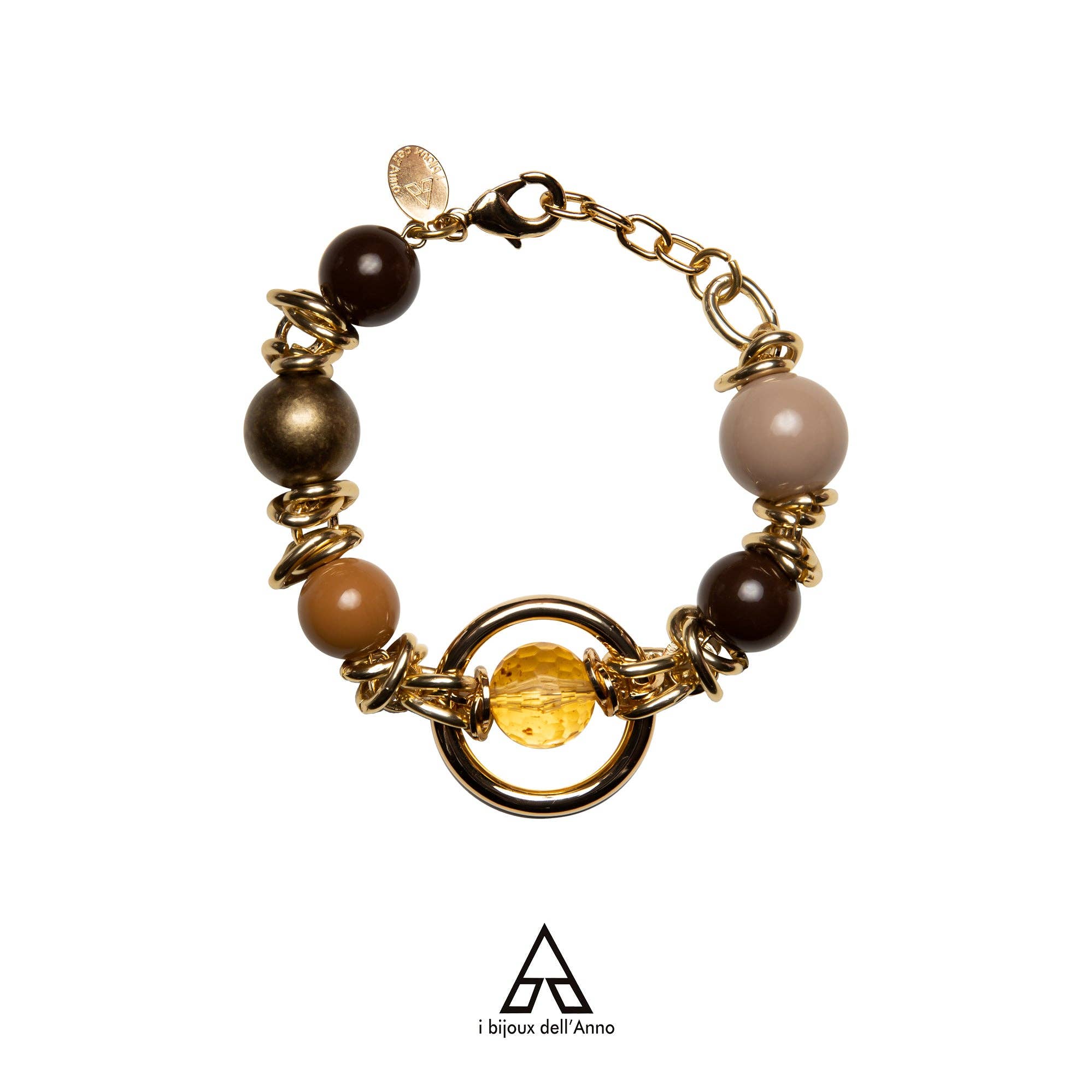 Bracelet with metal clasp entirely handmade and 100% Made in Italy. Made with beads in shades of white, transparent, and sprinkled with intervals of chains and a special gold element. All metal parts and chains are nickel-free, hypoallergenic, certified, and guaranteed. It will arrive at your home in an elegant pouch that you can also use to store and preserve your jewelry over time. Shipping is free in Italy for orders over €49.99. Our payment methods are: * PayPal, also in three installments * Any type of credit card * Klarna in three installments * Bank transfer * Cash on delivery (no additional costs)