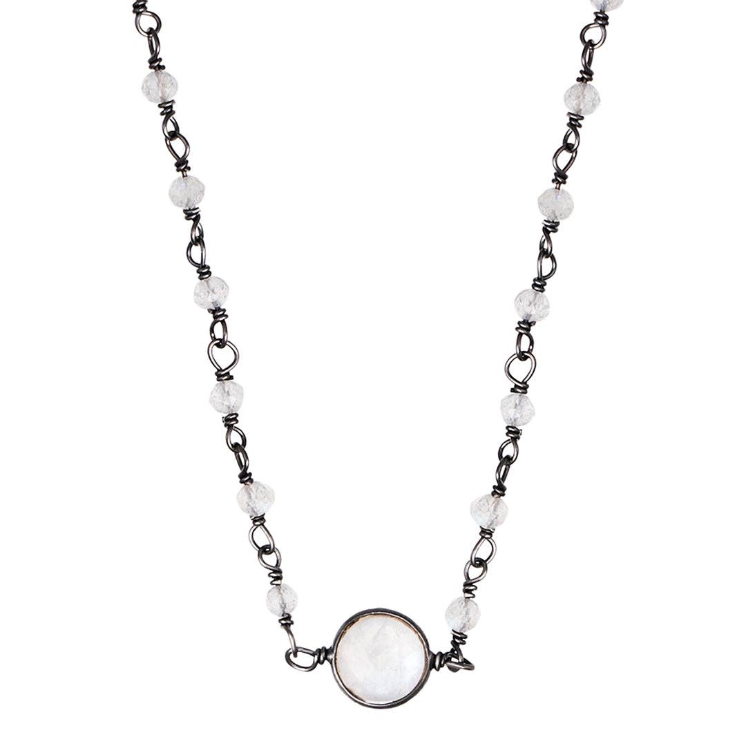 Freshwater Pearl Rosary with Heart Pendant Necklace black rhodium .925 sterling silver * Luxury trend jewelry for your everyday. * Set in black rhodium .925 sterling silver * Lobster closure * 16-18" adjustable chain * Heart Pendant: 12mm x 10mm * Freshwater pearl