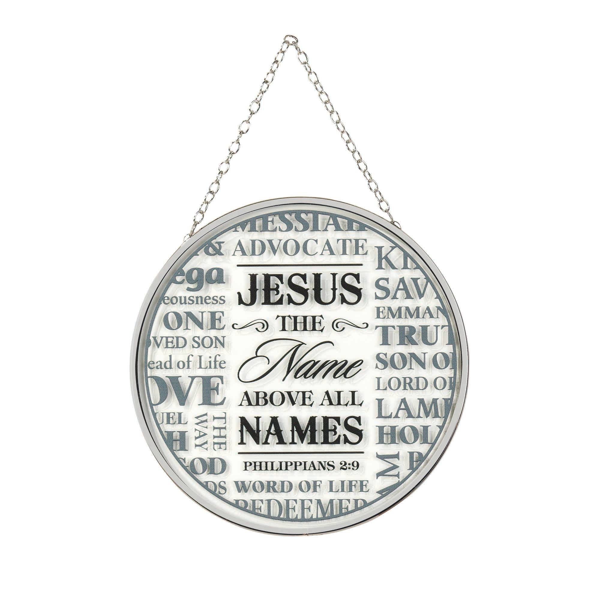 Illuminated by sunlight through your window, the butterfly and floral design on this stained glass style suncatcher will glow with beauty and inspiration. Includes the scripture verse "If anyone is in Christ, this person is a new creation. 2 Corinthians 5:17." The clear textured glass 6" disc has silver metal trim and hanging chain. Suction cup is also included. Comes in attractive window box.