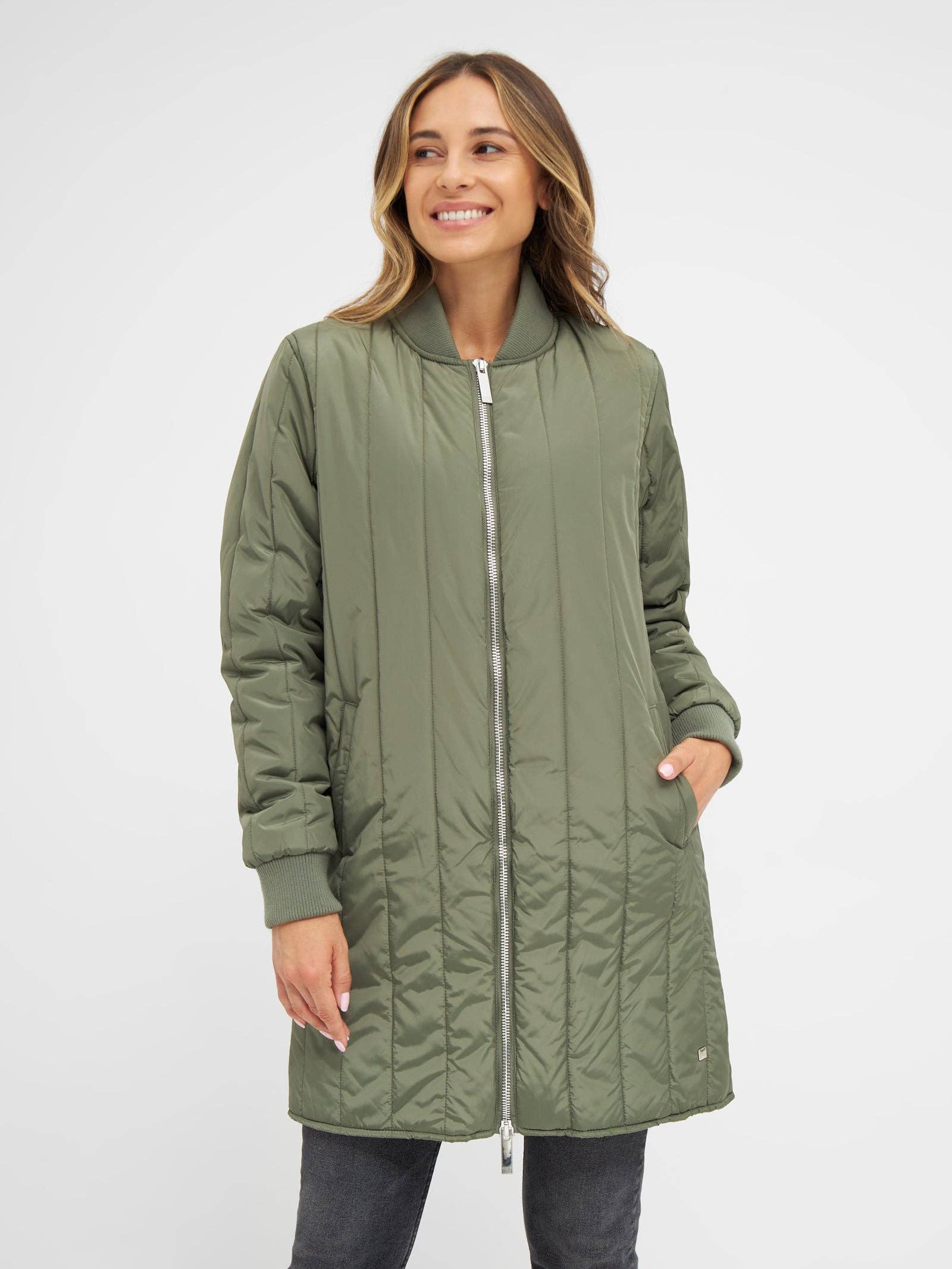 Freddie Short - Short Transition jacket in several colours Ticket Woman transition jacket. - The fit is spacious - Windproof and water repellent - Color: Black/silver zipper, Dusty rose/gold zipper, Dusty olive/silver zipper - Items: 180001 - The model is 173cm and is wearing a size 36