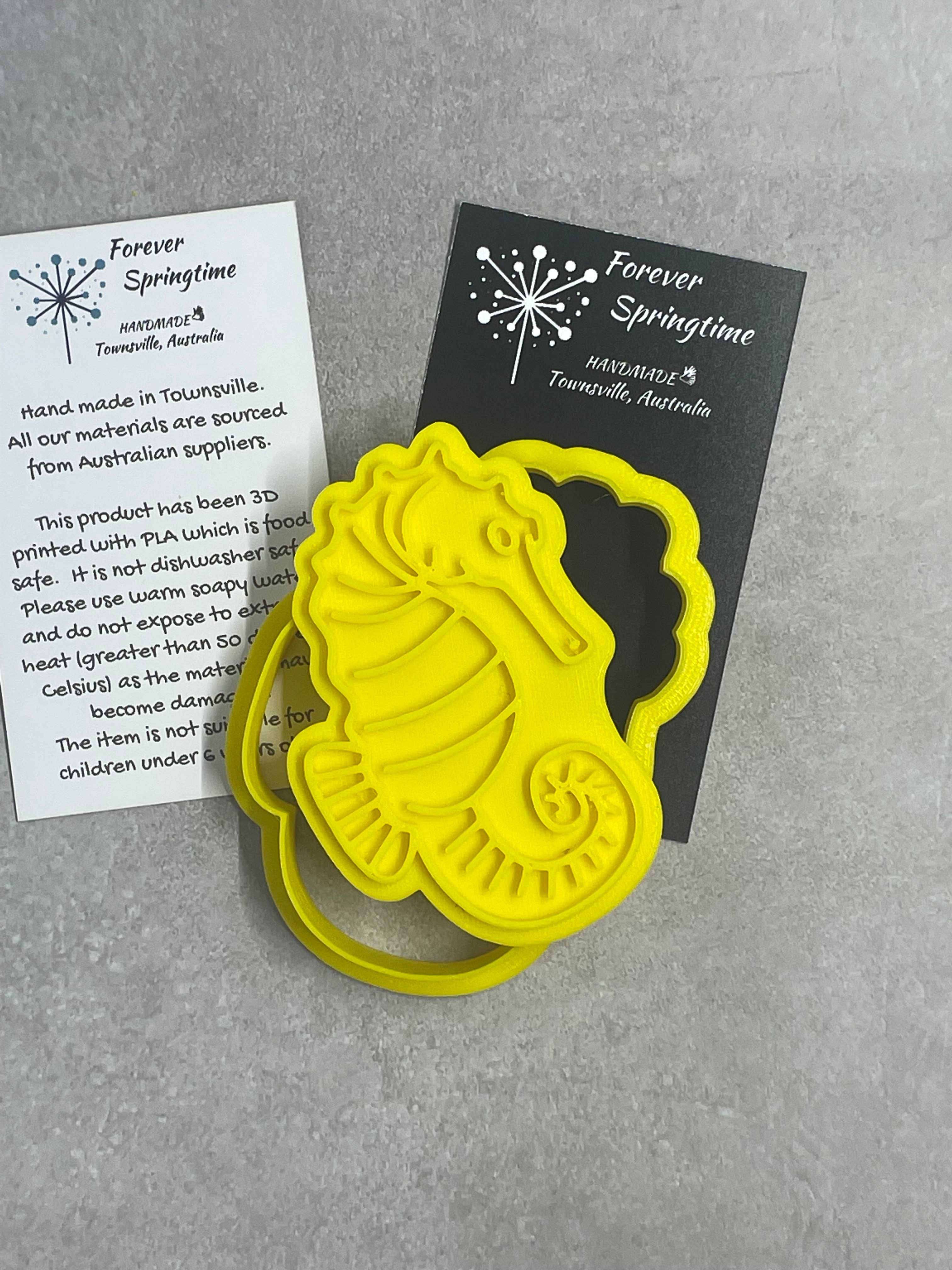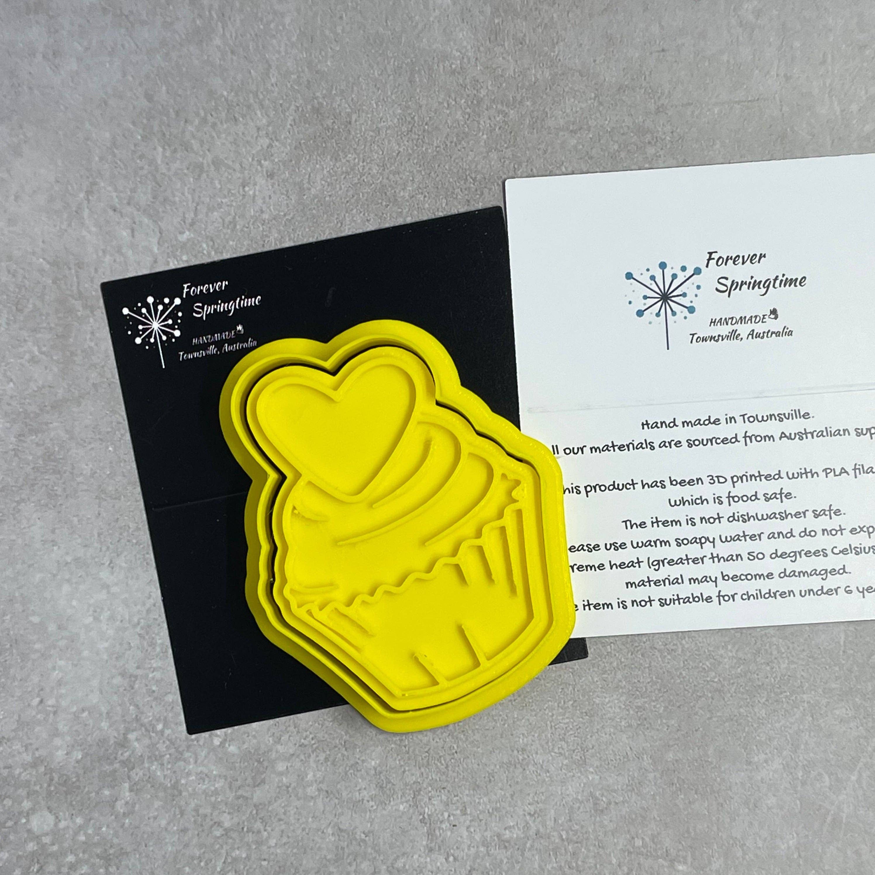 Cookie Cutter Size • 90mm across the largest dimension Product Specifications • Material: Food-safe PLA • Usual cutter height: 15mm tall • Age recommendation: Not suitable for children under 6 years old • Made in Australia using locally sourced materials Product Features • Unique design • 3D printed for precision cutting • Eco-friendly, food-safe materials • Perfect for fondant, polymer clay, and various crafting projects • Supports Australian suppliers and manufacturing Product Care Instructions • Clean with warm, soapy water (not dishwasher safe) • Avoid exposing to extreme heat (greater than 50°C) to prevent damage • Keep out of reach of children under 6 years old We take every precaution to ensure the highest quality, but minor imperfections may occur during the printing process.