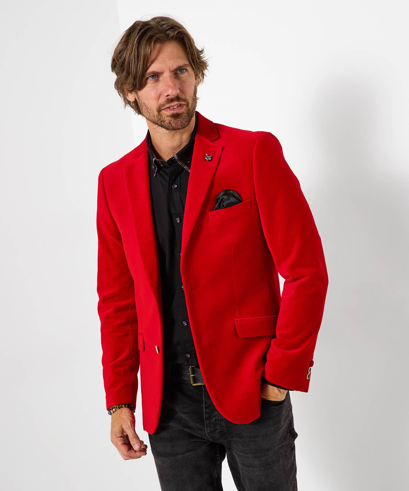 Plain blazer in cloth fabric. * Made of 100% wool fabric. * Custom fit cut. * Notch lapels, with buttonhole on the left lapel. * Inserted pocket on the left side of the chest. * Silhouette with two-button closure. * Two flap pockets at the waist. * Sleeves finished with buttons. The model is 181 cm tall and wears size 48.