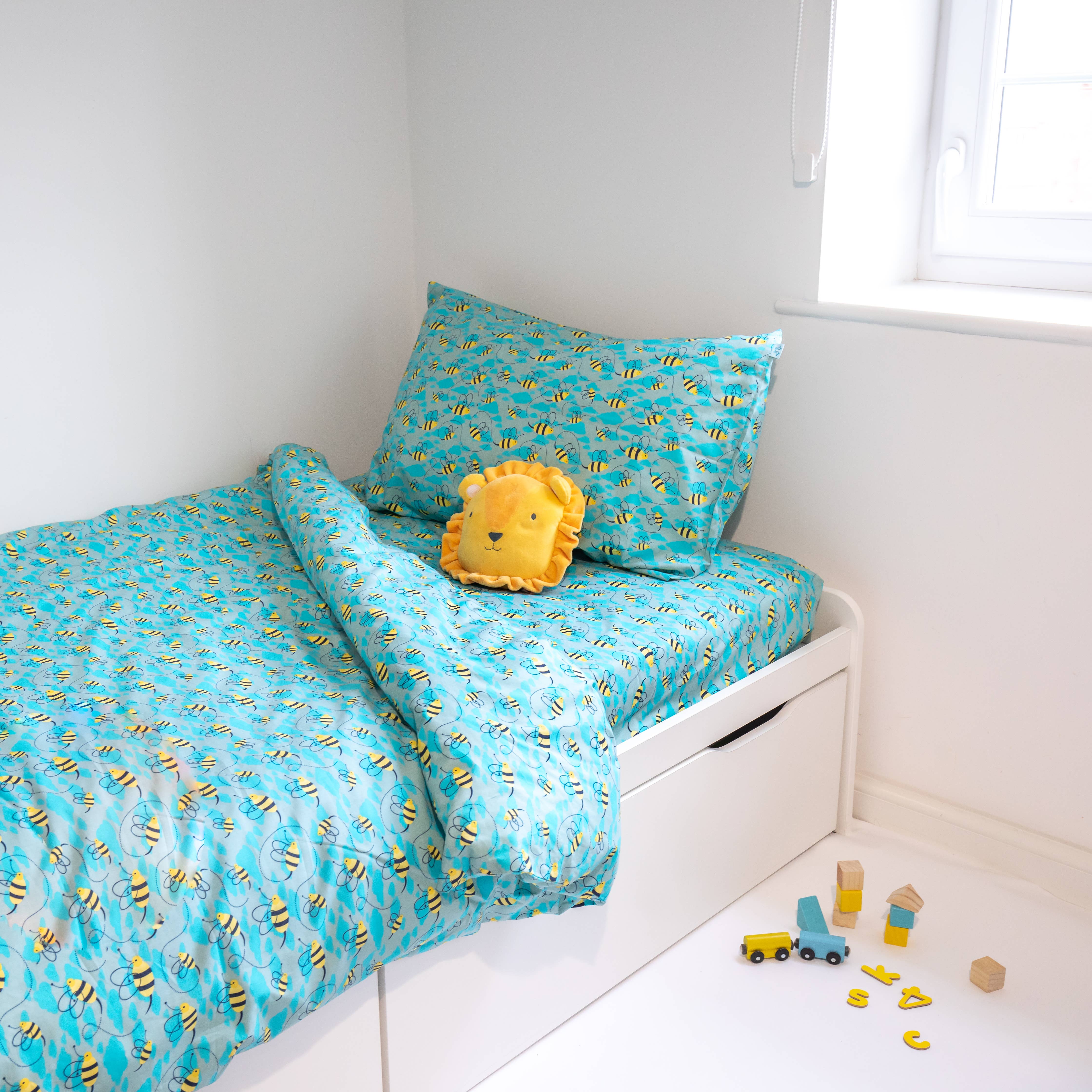 With one side of the bedding featuring a cool car in duck egg blue and the other side starring a funky moped on a yellow ground, this bedding truly offers 2 great looks for the price of 1. Printed onto a soft touch, 100% Cotton. This fabulous bedding will look great in any bedroom. Bedlam is a fun-packed bedding range fit for free-roaming kids where bedrooms are places where imaginations run riot. Bold colours and bright, engaging designs turn any bedroom into a place where childhood adventures begin Material - 100% Cotton Contents - 1 x Duvet Cover & Pillowcase/s (single x1, other sizes x2) Care Instructions - Wash at 40 degrees, Do not Bleach, Cool Tumble Dry, medium iron, Do not dry clean