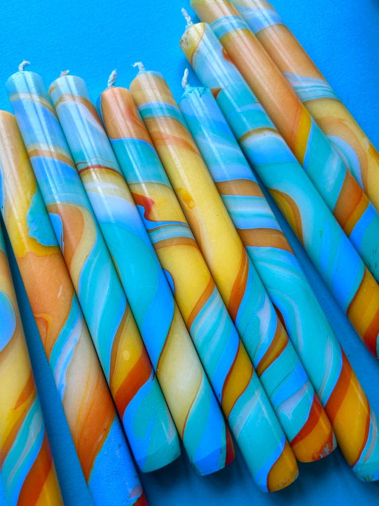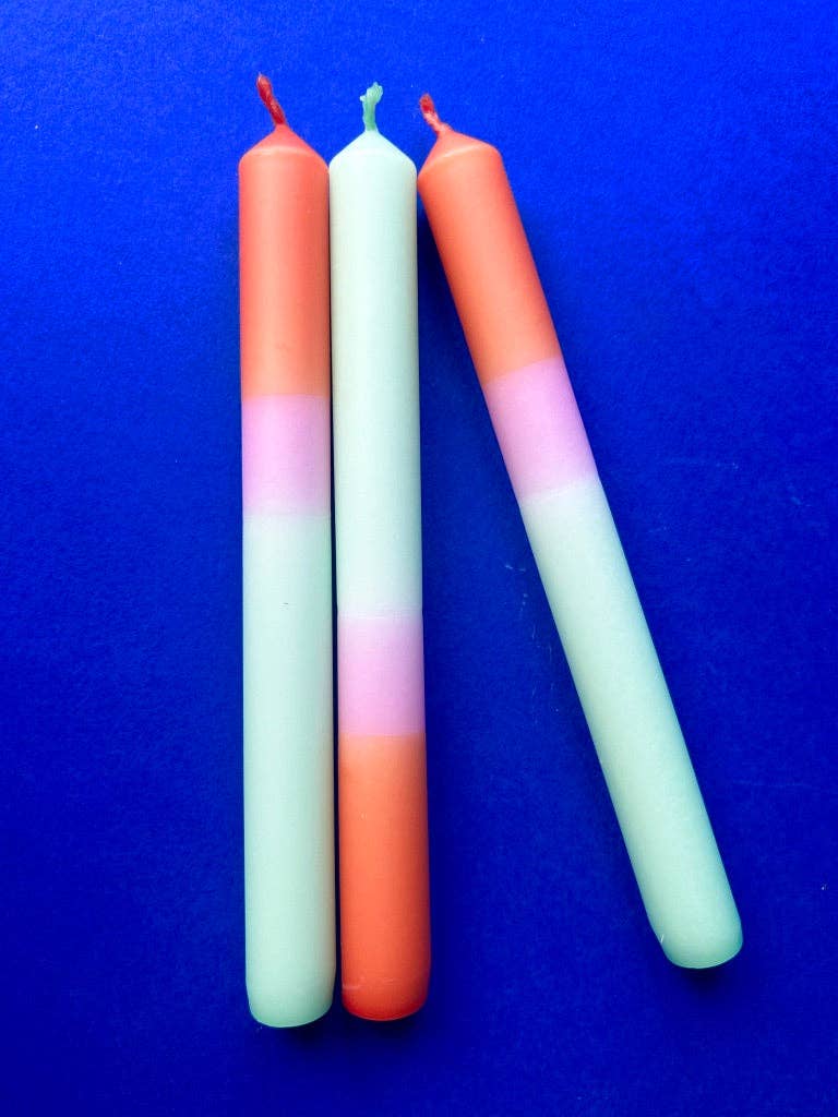 These Pinstripe candles are available to be purchased individually rather than in boxes so you can mix and match colours to your hearts desire! Candles are sold as 10 per style. Made from Paraffin wax Burn time 9 hours