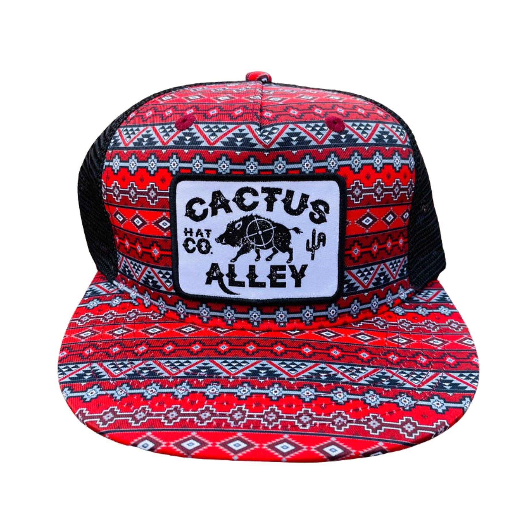 PH117-P179 Cactus Alley black and white Aztec print with white mesh snapback cap featuring our "Feed Store" patch!