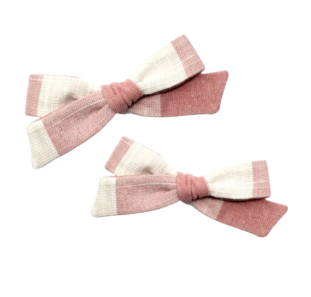 Regular Pigtail Bow Set | Pink Check