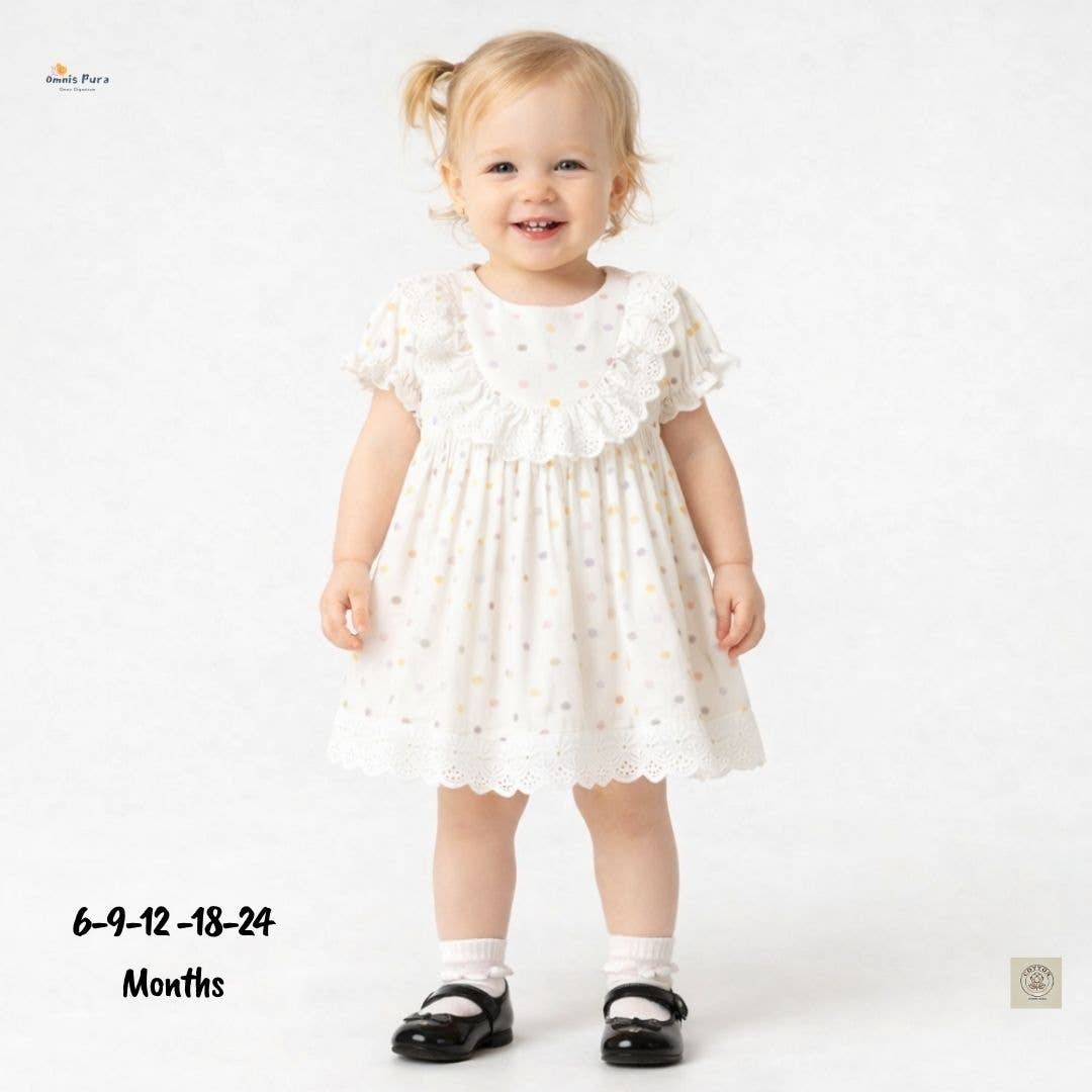 Vestido de Malha de Algodão para Bebé com Gola de Tecido