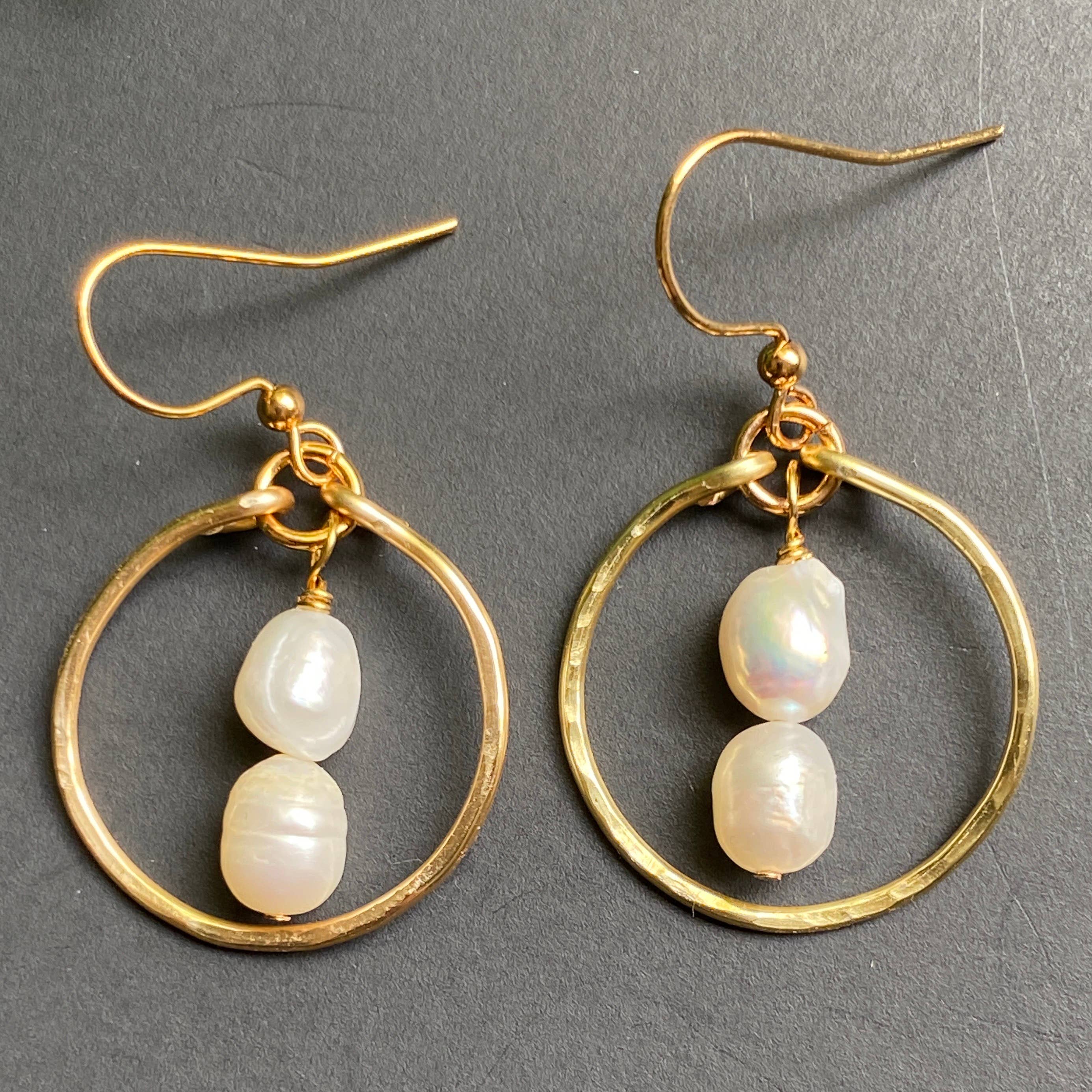 These simple freshwater pearl earrings are a staple for every day and perfect for an elegant outfit. They are AAA grade, cream with a beautiful luster. They are 1.5" long with handmade, tarnish resistant ear wires. Also available in silver.