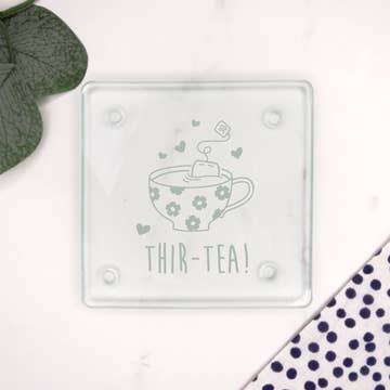 4-Pack of Drink Coasters. Enjoy your favorite drink and entertain your friends with these fun drink coasters! They feature a high-gloss finish and a cork-wood back to prevent sliding and protect your table. Start a collection. They make great gifts. 4-piece set High-gloss MDF top Cork back to prevent sliding 3.75" x 3.75" $25