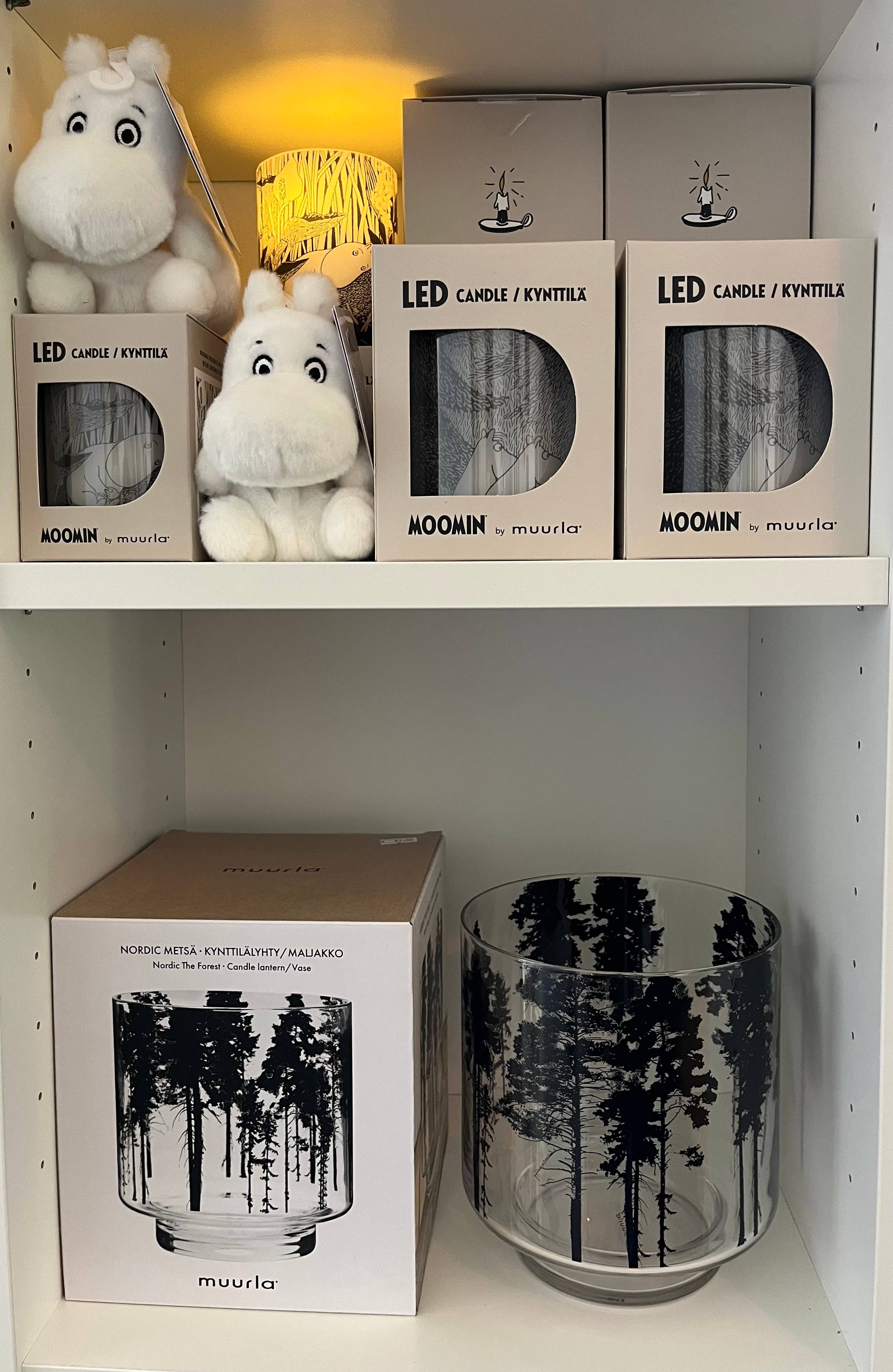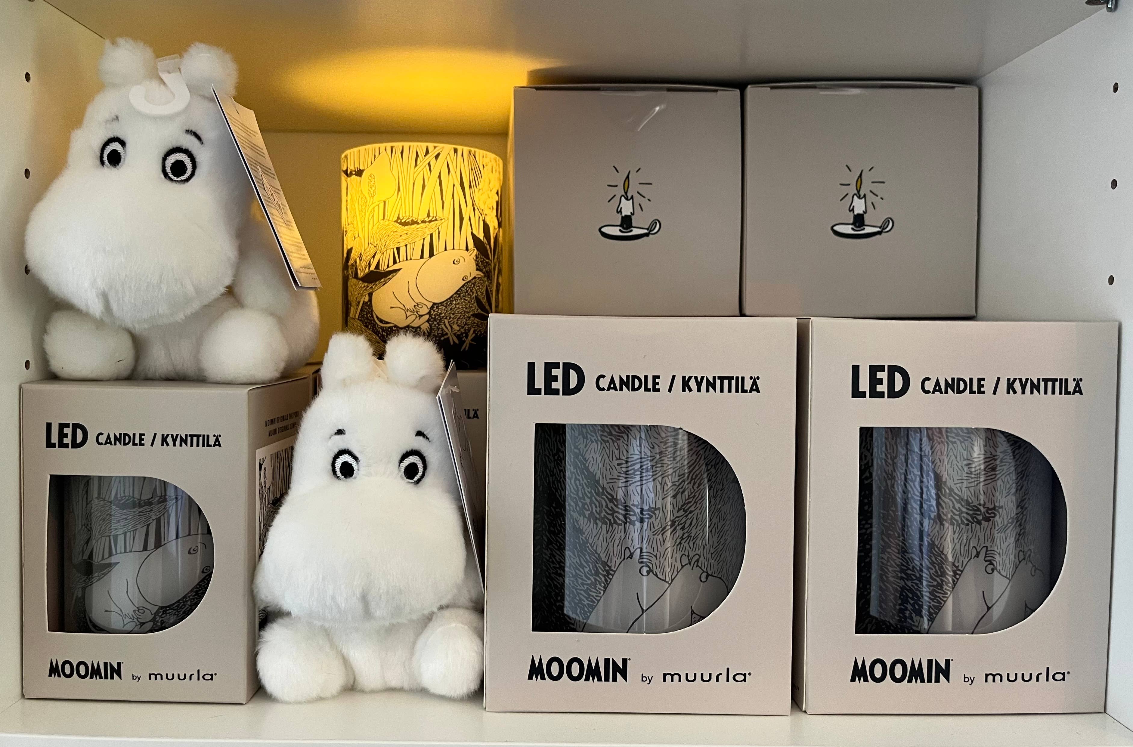 Muurla Moomin LED Candle – Starry Night Bring a touch of Moomin magic to your home with this enchanting LED candle from Muurla. Against a snowy blue backdrop, twinkling stars shine above as all your favourite Moomin characters gather for a cosy winter evening. Crafted from real paraffin wax, it has the timeless look of a classic stearin candle, while its soft, warm glow gently illuminates the artwork. Safe, practical, and endlessly charming, it makes a delightful accent for your own home or a thoughtful gift for Moomin fans. Details: * 1 x Muurla Moomin LED Candle – Starry Night * Built-in On/Off timer (6 hours) * Requires 2 x AA batteries (not included) * Made of paraffin wax * For indoor use only * Dimensions: Ø 10 cm, H 12.5 cm Bring a little sparkle to dark winter evenings with this starry Moomin scene.