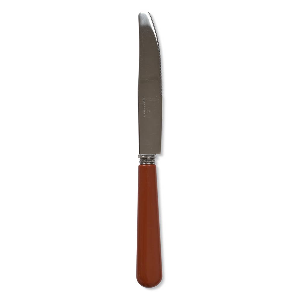 Our stainless steel cutlery with ABS handles is designed in an authentic and timeless style, while the superior quality of the materials ensures their durability and longevity. Whether for a casual meal or an elegant evening, our cutlery is sure to make an impression on your table. With their timeless design, this cutlery is a wise investment for long-term use. Dishwasher safe. Material: stainless steel, plastic Color: terracotta