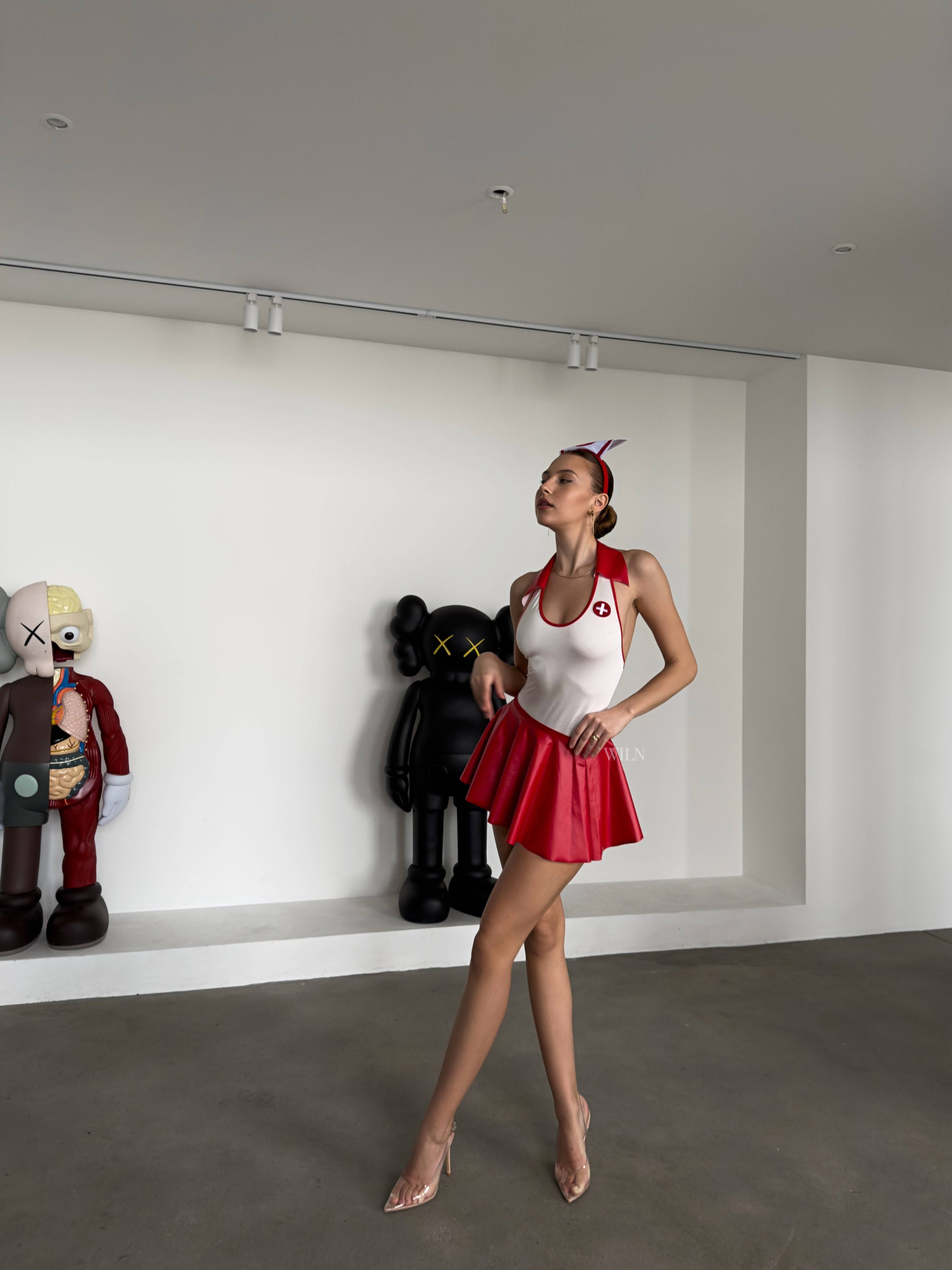 SKU: 80083 Made in China Fabric: 80% Polyester, 20% Elastane, Hair Clips: Plastic,belt: Plastic, Elastane