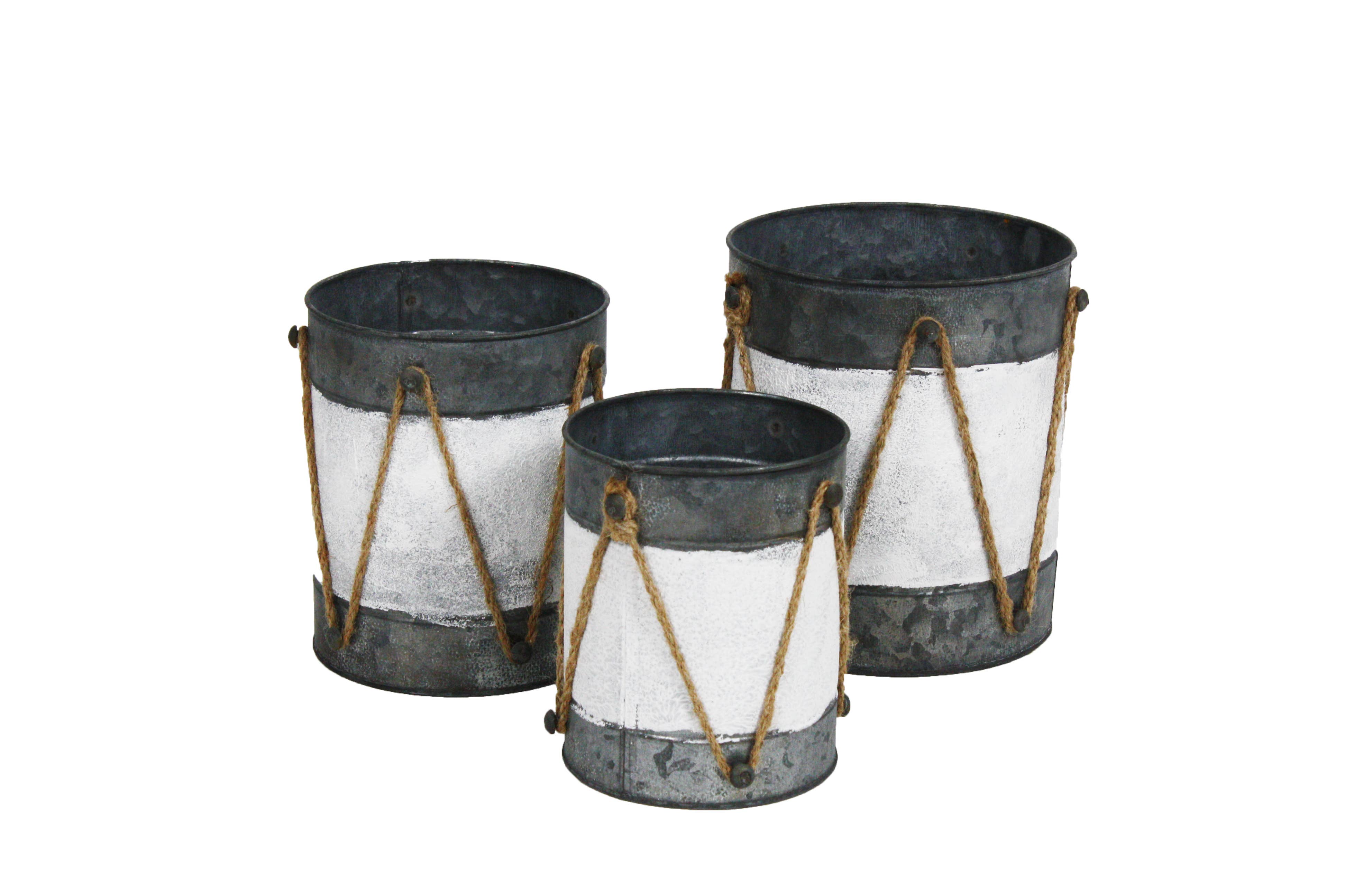 Modern sophistication comes to life in this galvanized collection that delivers the earthly yet urban appeal today's trendsetters seek. From Coal buckets to contemporary uprights, these eclectic pieced deliver versatile style and complement even the most discerning decor. Each includes a plastic liner. Item Dimensions: 6" X 5.24" X 7.5" X 6" 8.25" X 7"